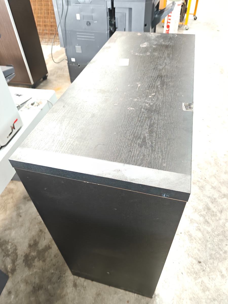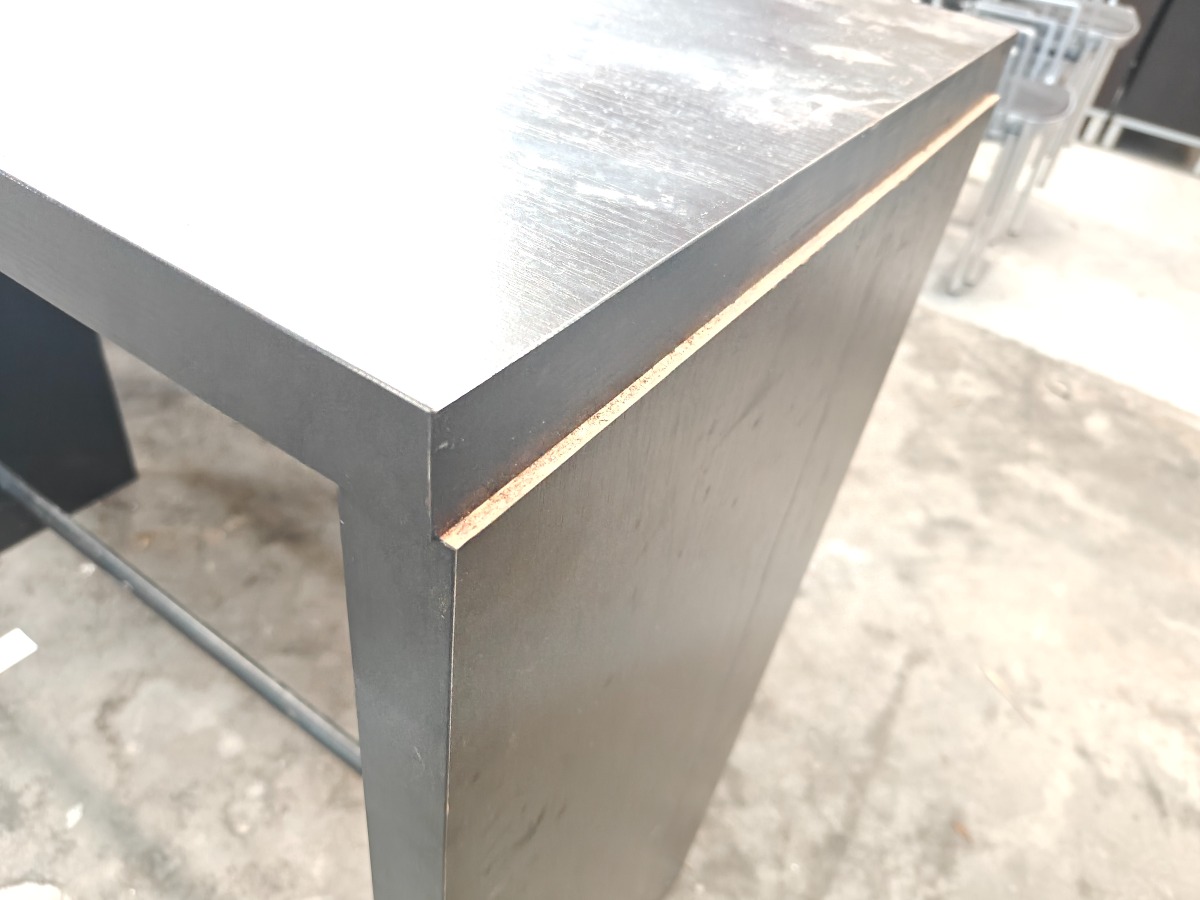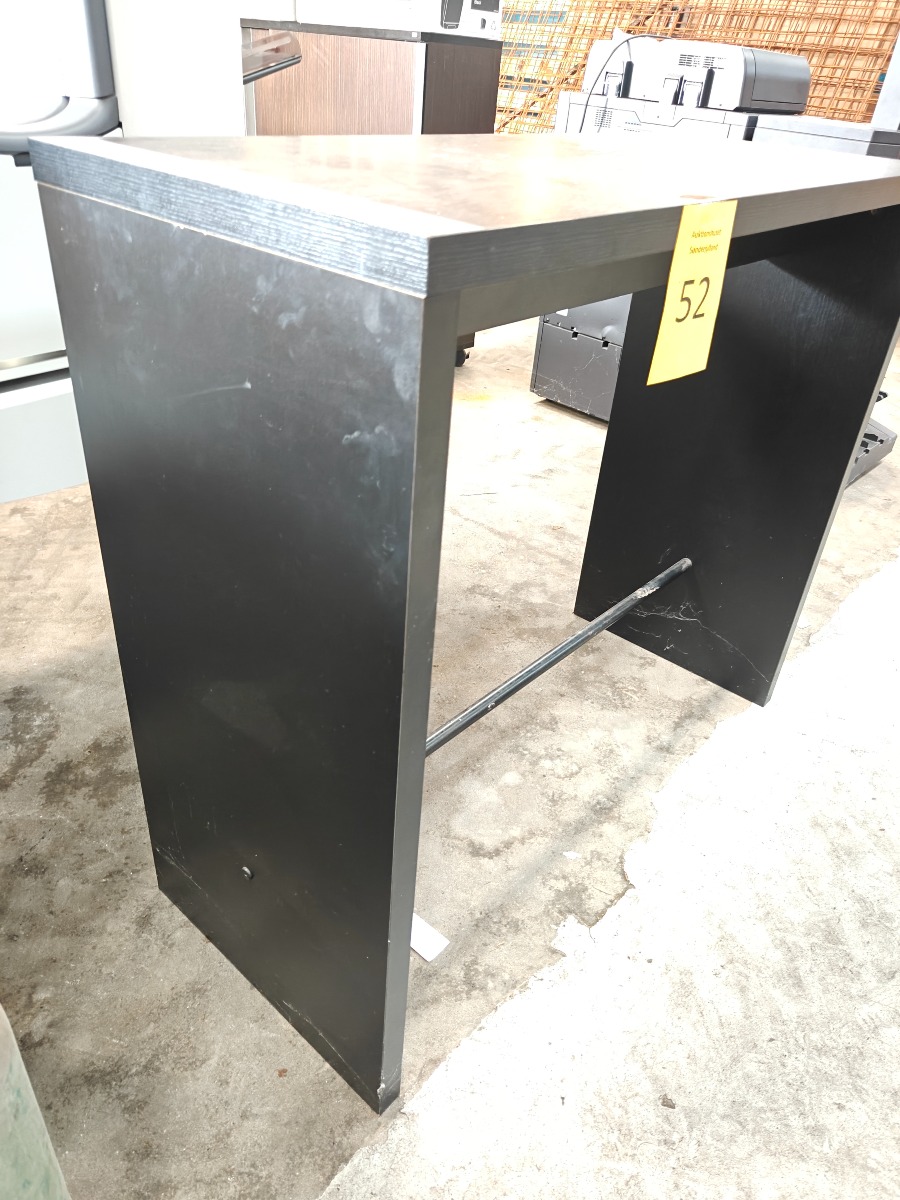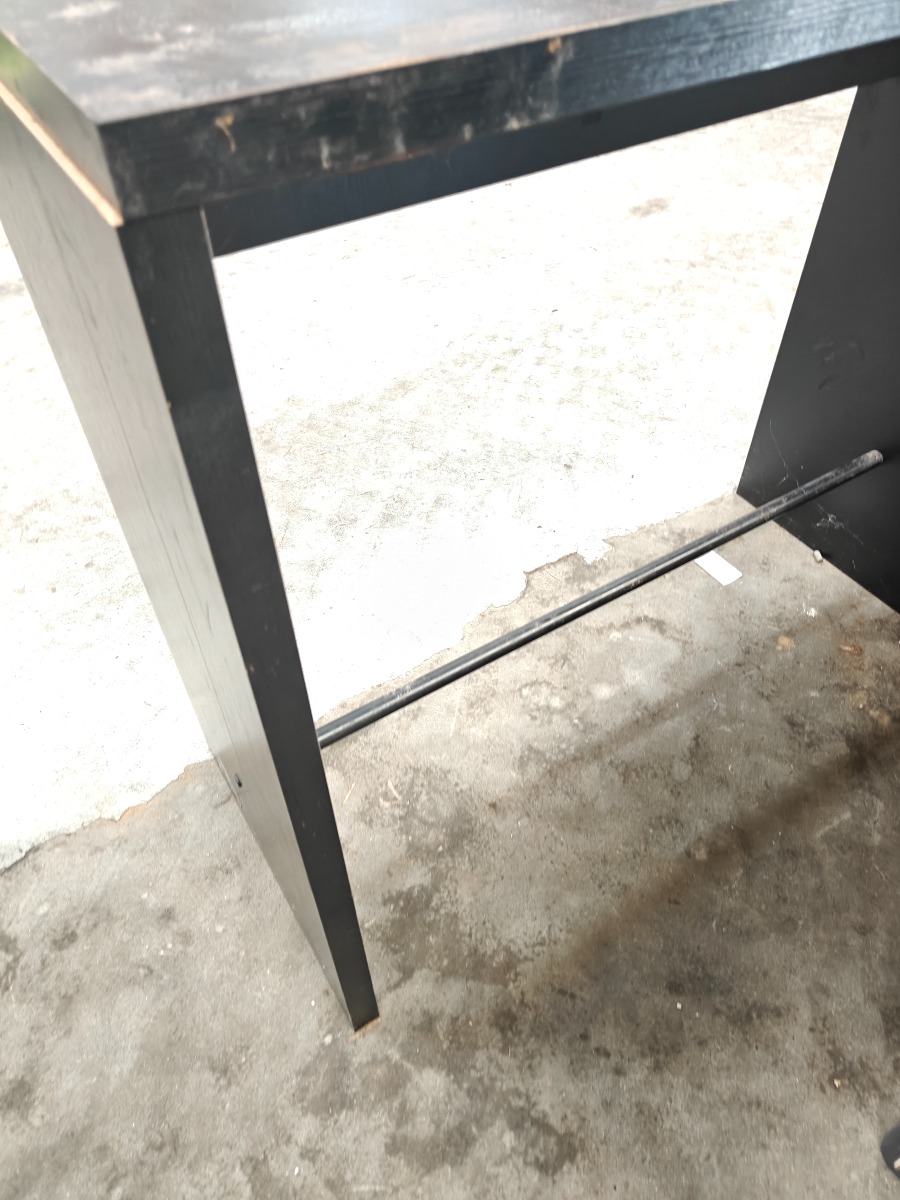 Højbord i sort træ med mål 50 b x 132 lang x 1,04 høj. Med brugsspor og slidt