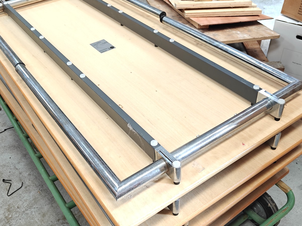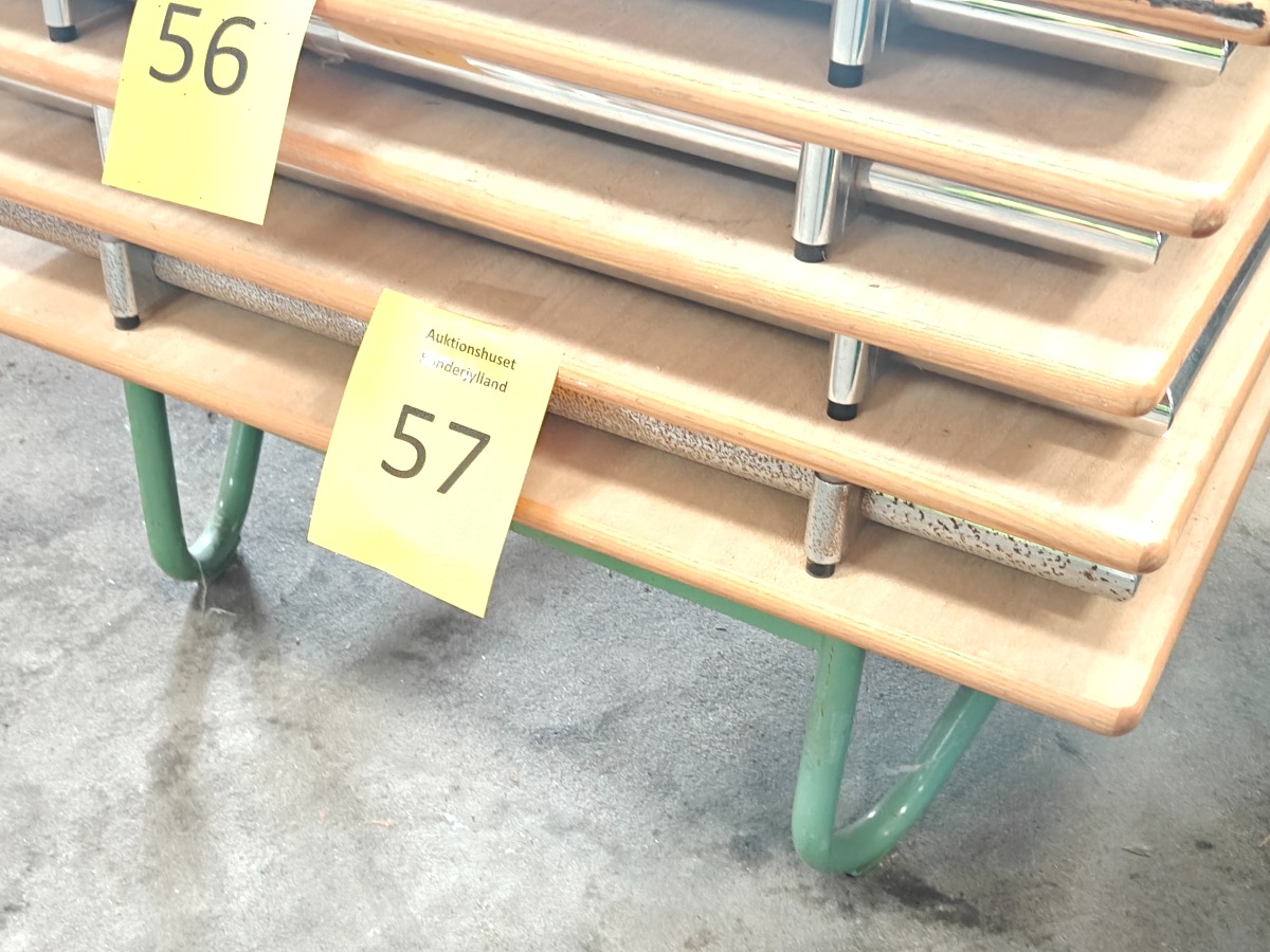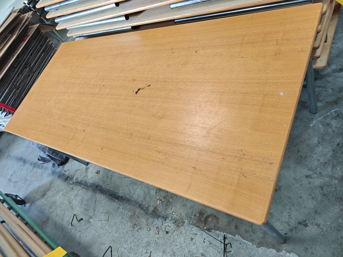 2 stk klapborde fra Randers Danish Furnituremakers med plade og i stål stel. Måler 180 x 80 x 72 høj. Kan klappes sammen. Perfekt til gildesalen. Med brugsspor.