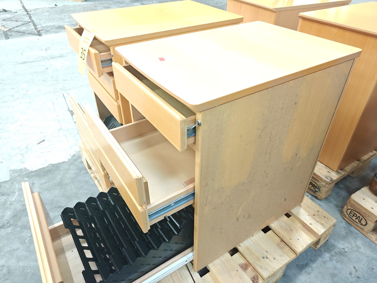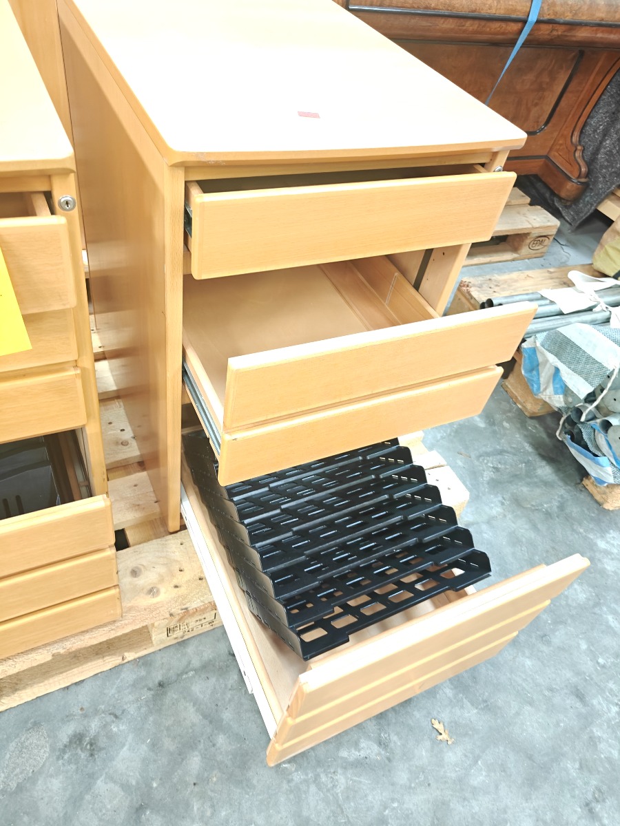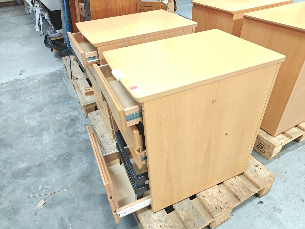 Kontor skabe i bøg, 4 stk. 2 med nøgle og 2 uden. Måler 45 x 65 x70. Med brugsspor