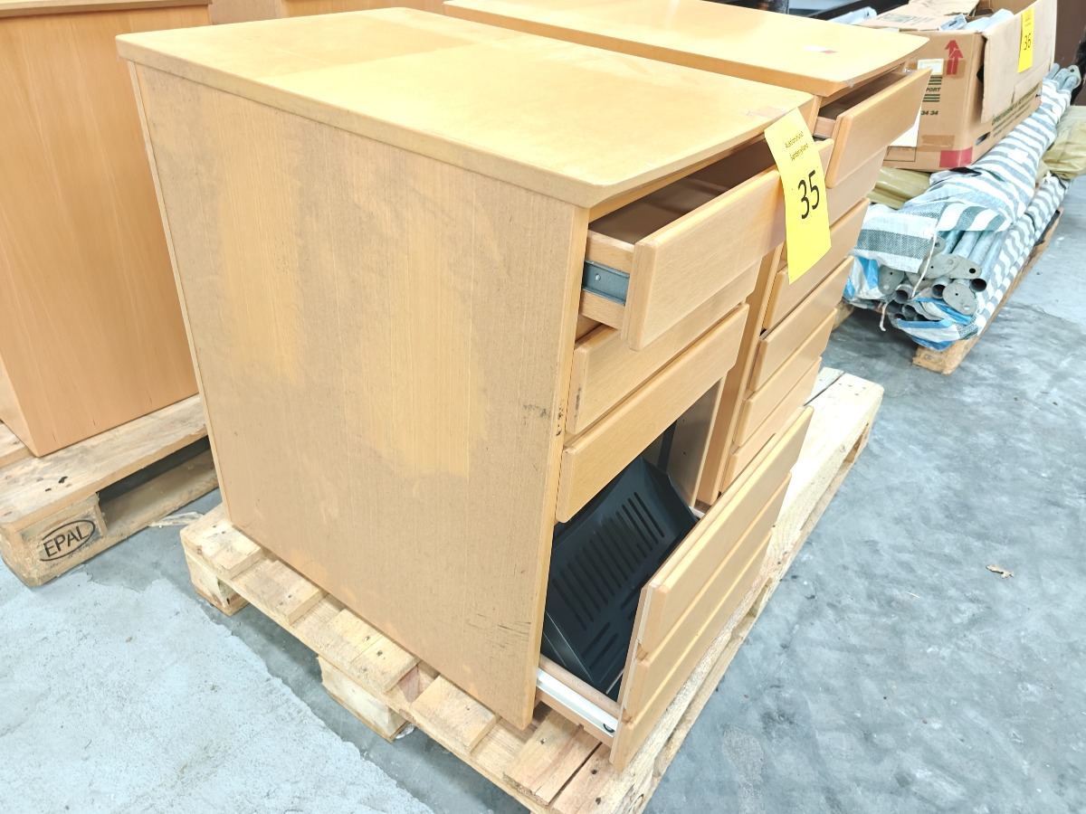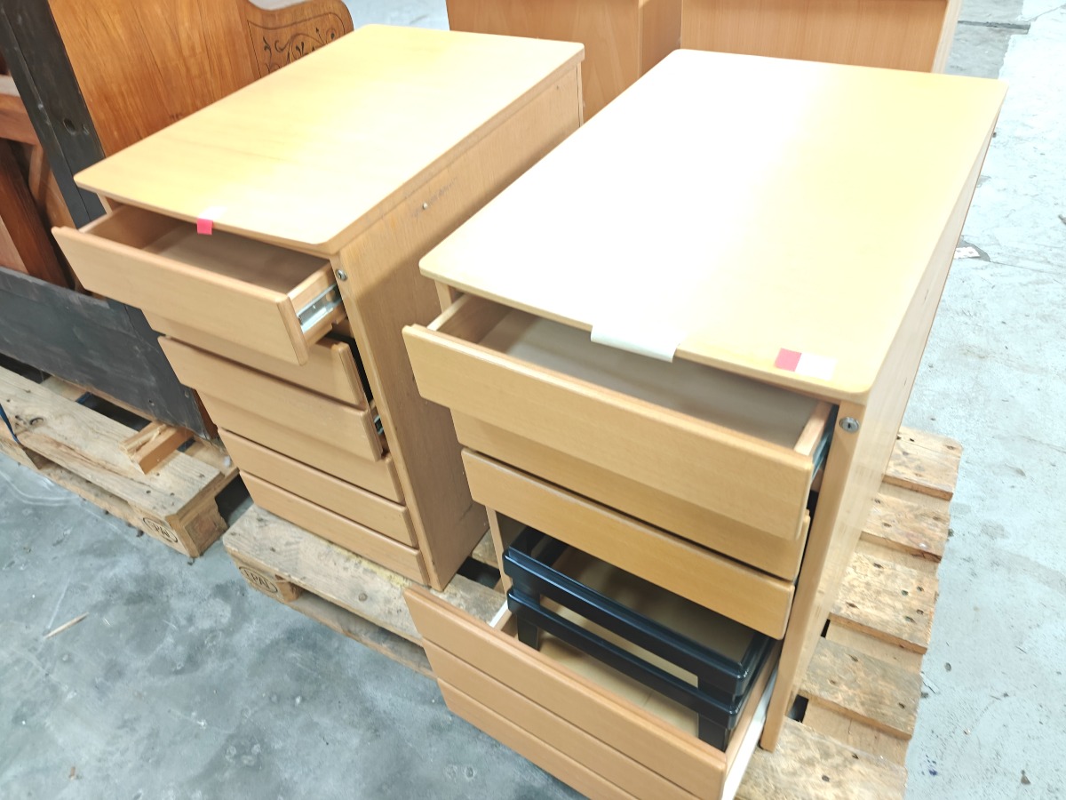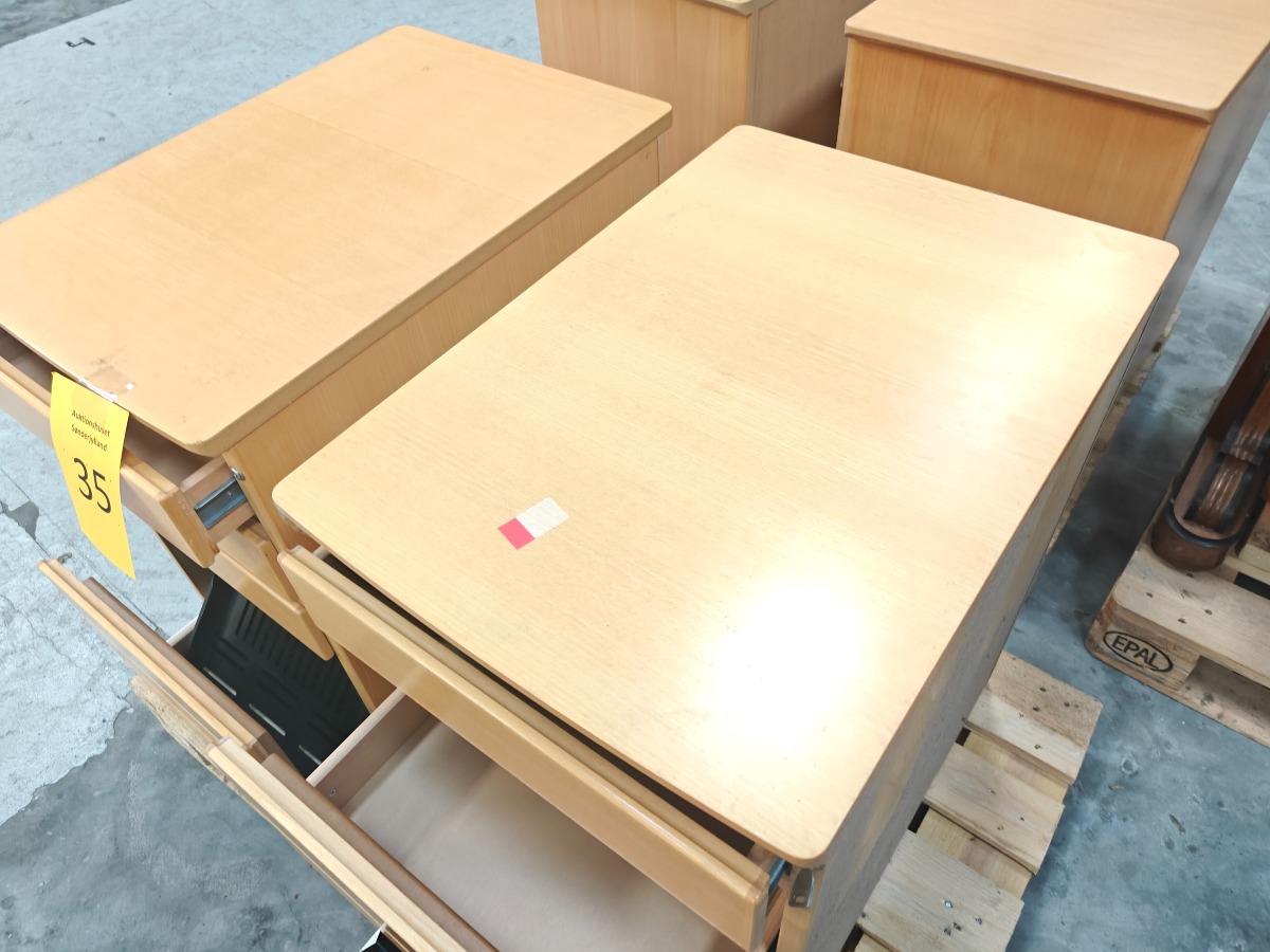 Kontor skabe i bøg, 4 stk. 2 med nøgle og 2 uden. Måler 45 x 65 x70. Med brugsspor