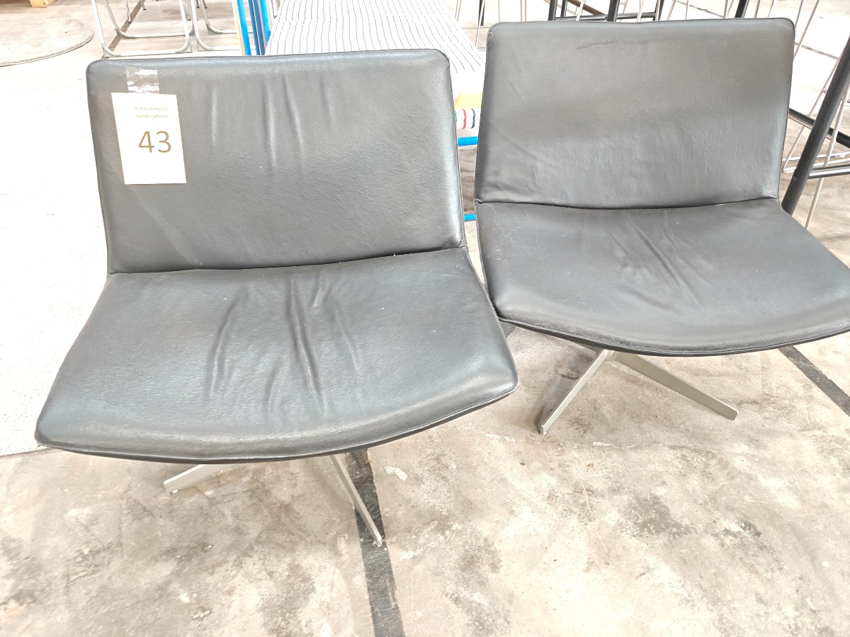 2 stk  Lounge stole i sort læder med børstet stål stel. Brugte og med brugsspor