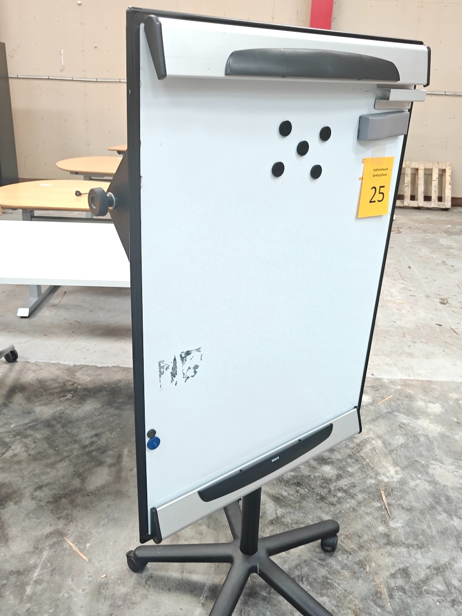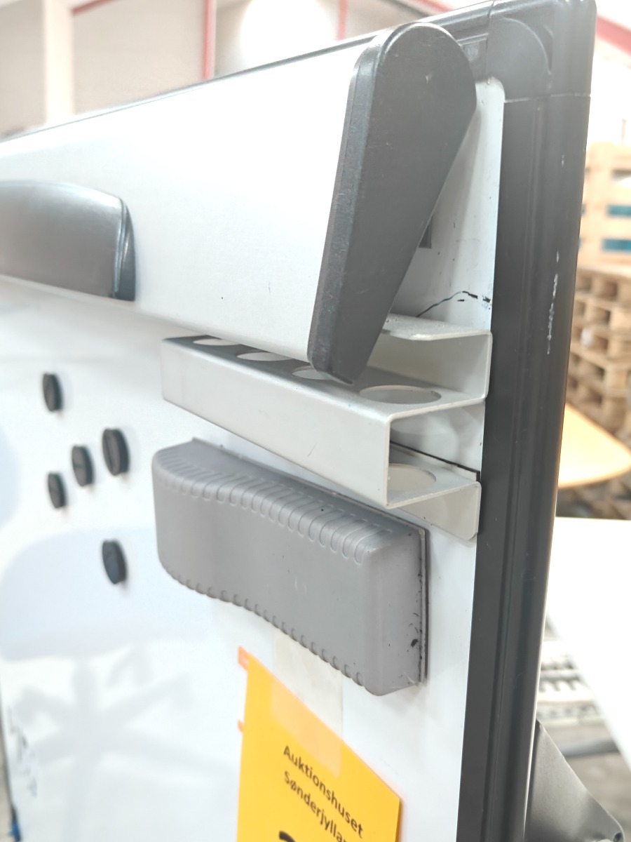 Whiteboard med hjul. Måler 1,47 x 76 bred. Med brugsspor
