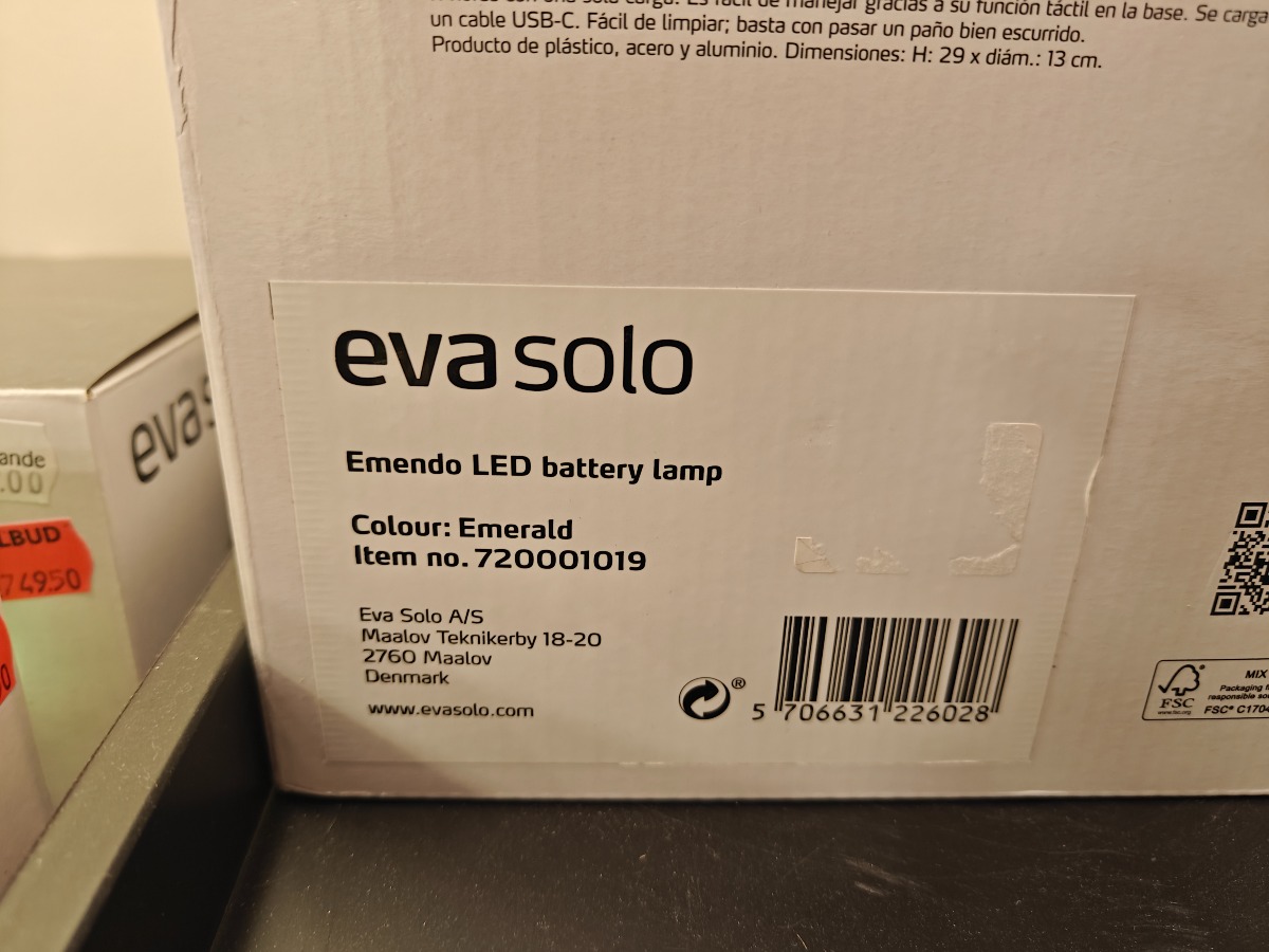Eva Solo Emendo bordlampe, grå. Ny og ubrugt. Oprydning fra isenkram butik.
