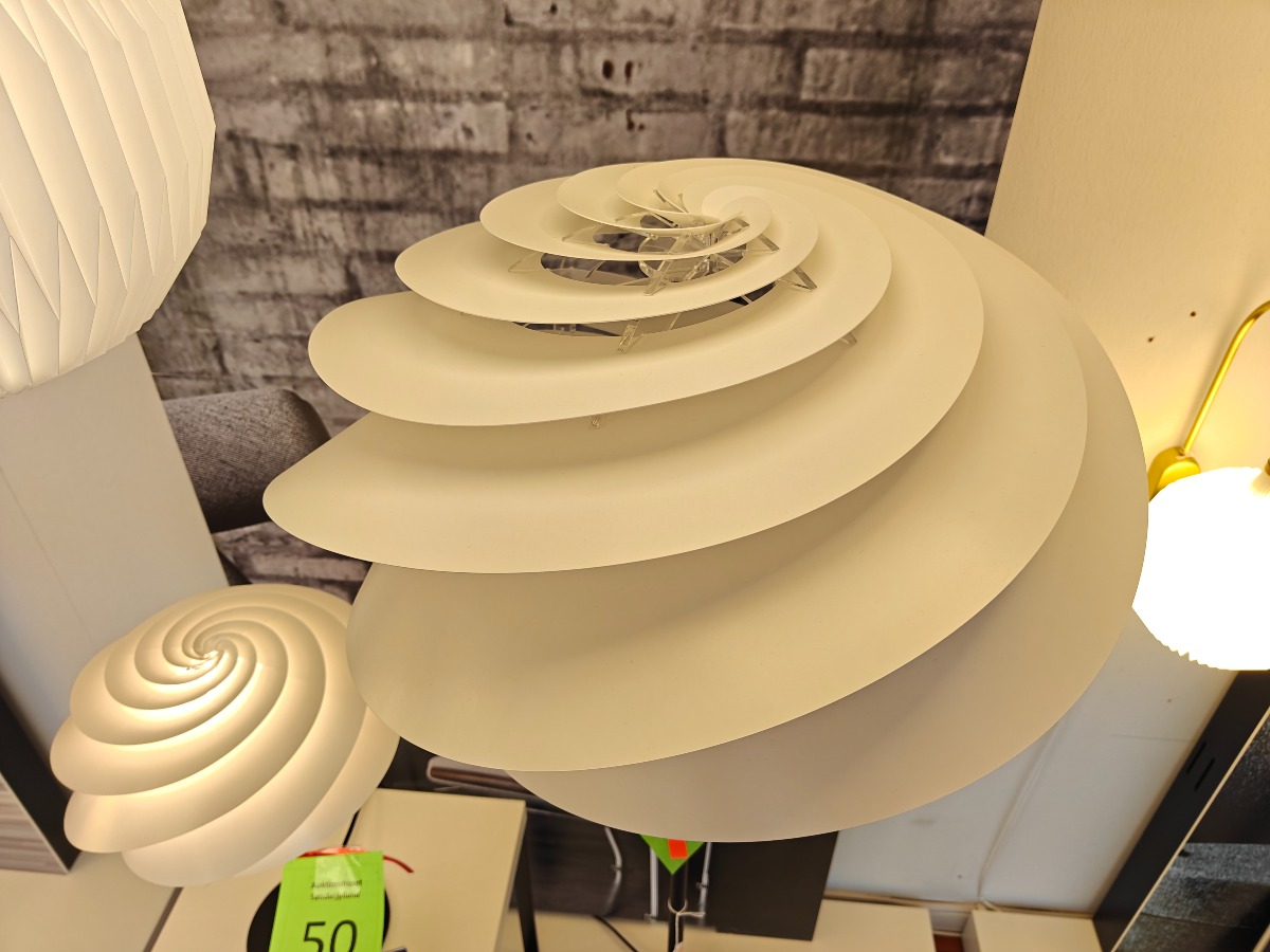 Le Klint Swirl gulvlampe. Design Øivind Slaato. Udstillingsmodel. Oprydning fra isenkram butik.