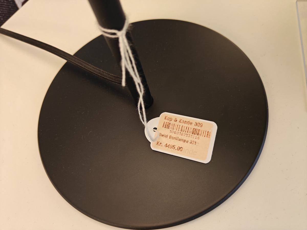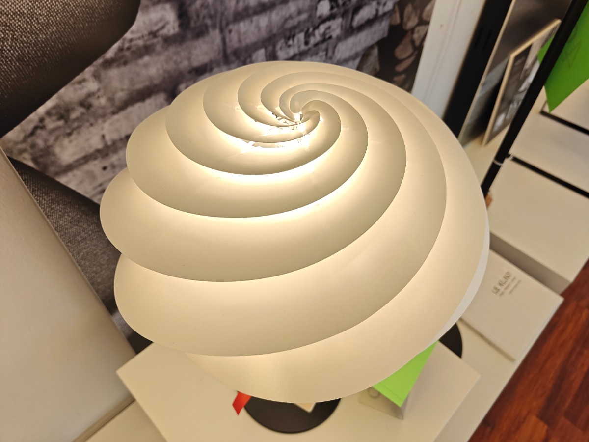 Le Klint Swirl bordlampe. Design Øivind Slaato. Udstillingsmodel. Oprydning fra isenkram butik.