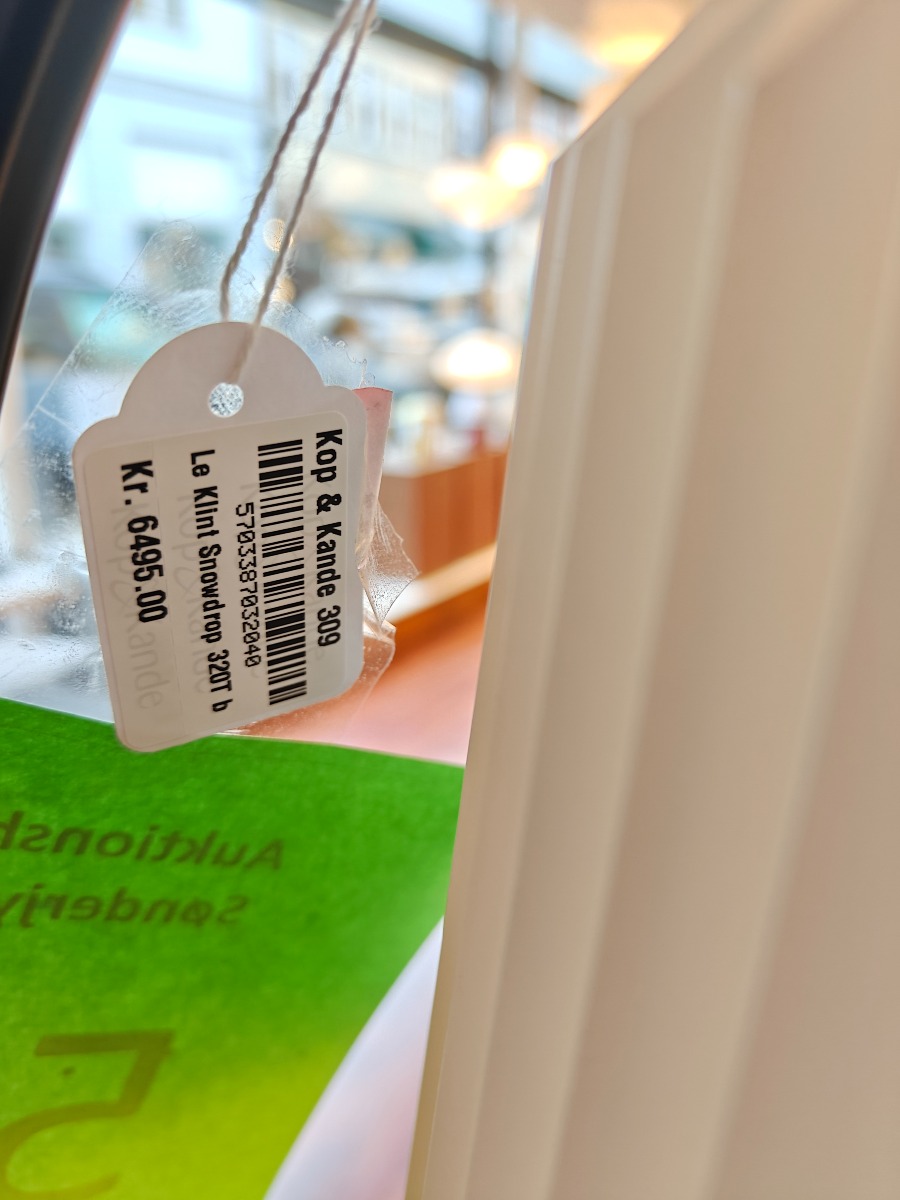 Le Klint Snowdrop bordlampe. Design Harrit-Sørensen og Samson. Udstillingsmodel. Oprydning fra isenkram butik.