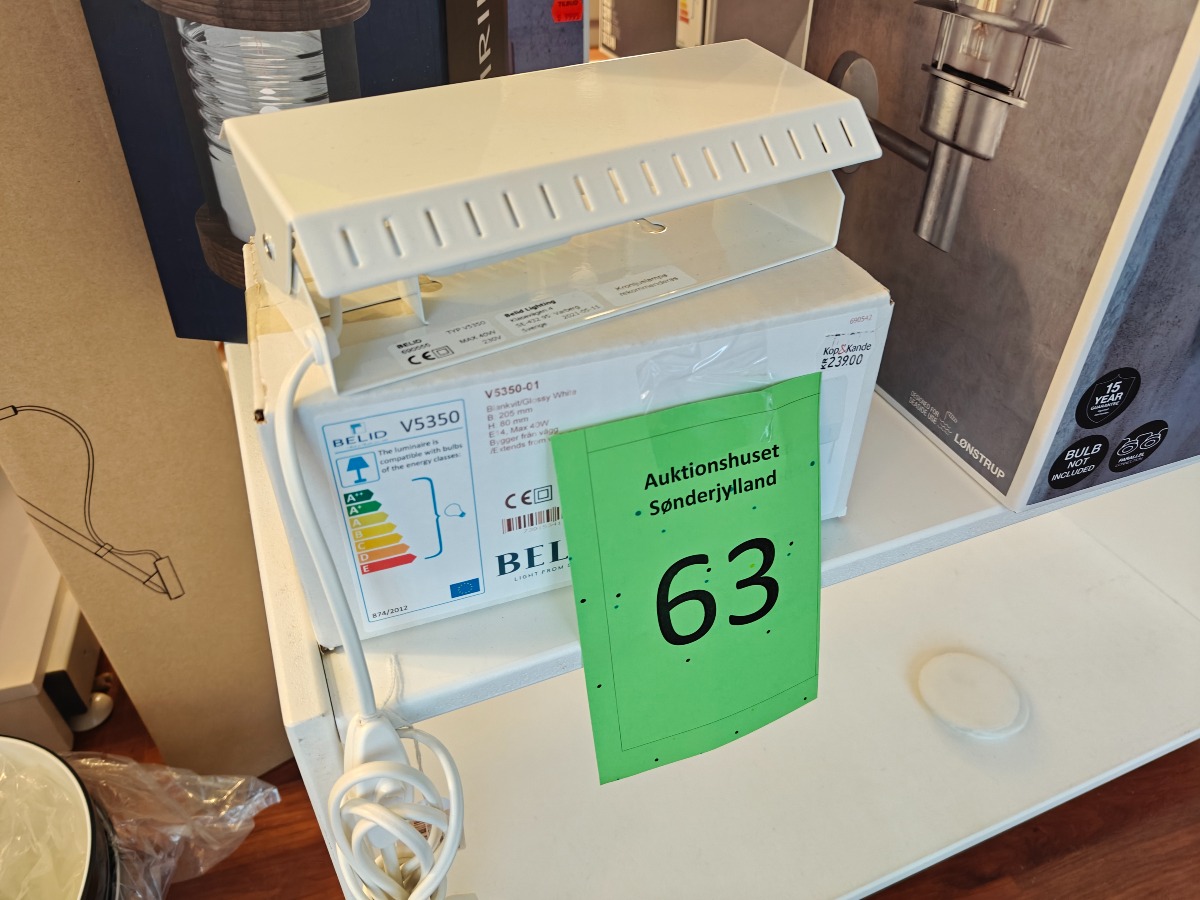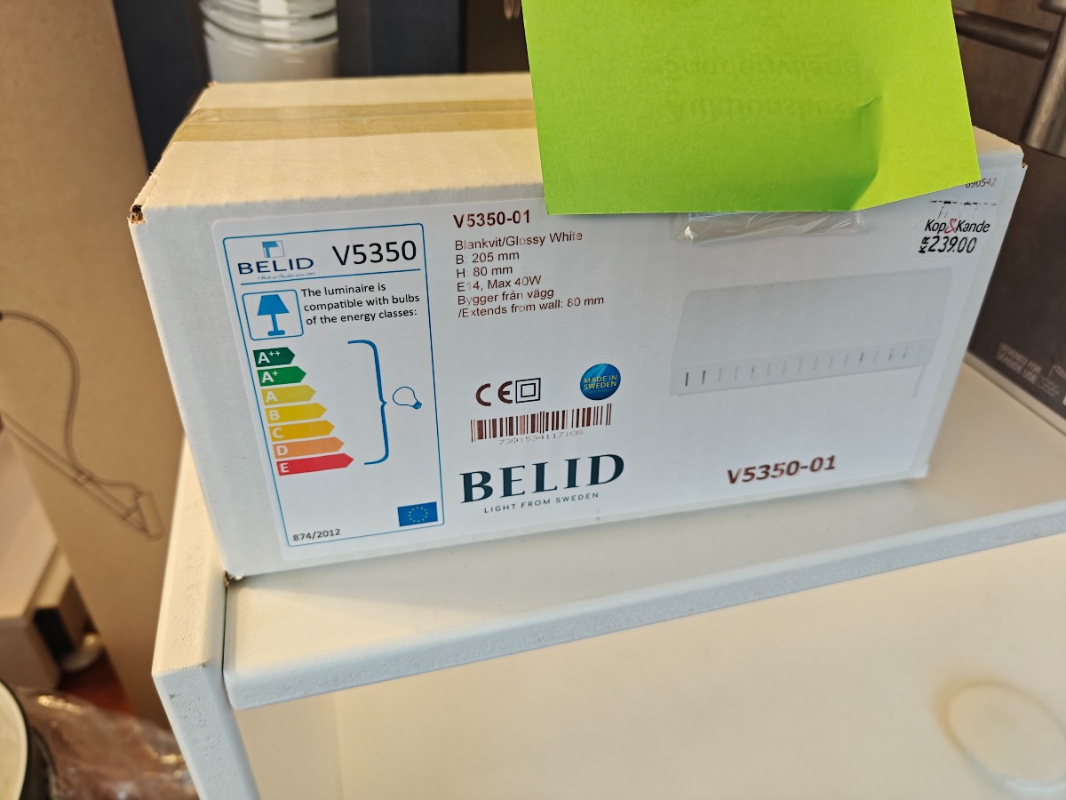 Belid Vippa væglamper. Hvidlakerede. Ene i ubrudt embalage. Oprydning fra isenkram butik.