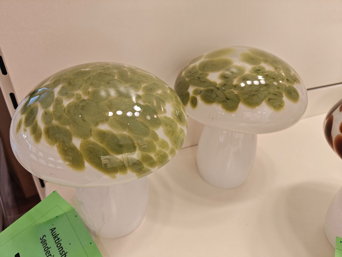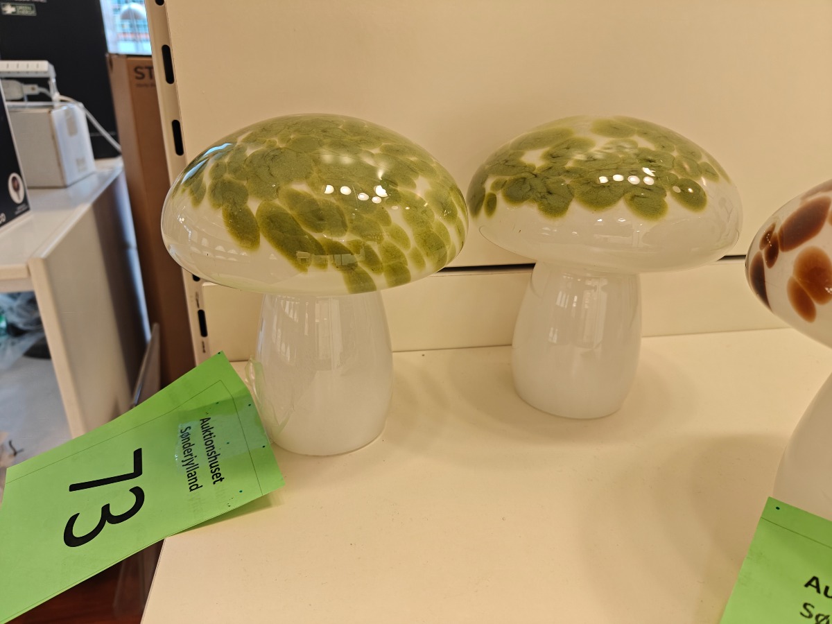 2 stk. La Vida Mushroom LED bordlampe af mundblæst glas. Udstillingsmodeller. Oprydning fra isenkram butik.