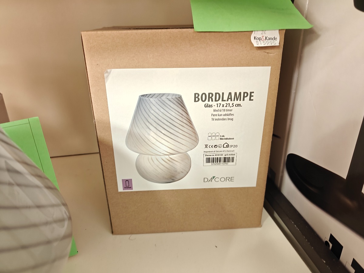 Da'core bordlampe til batteri. Glas. I ubrudt embalage. Oprydning fra isenkram butik.