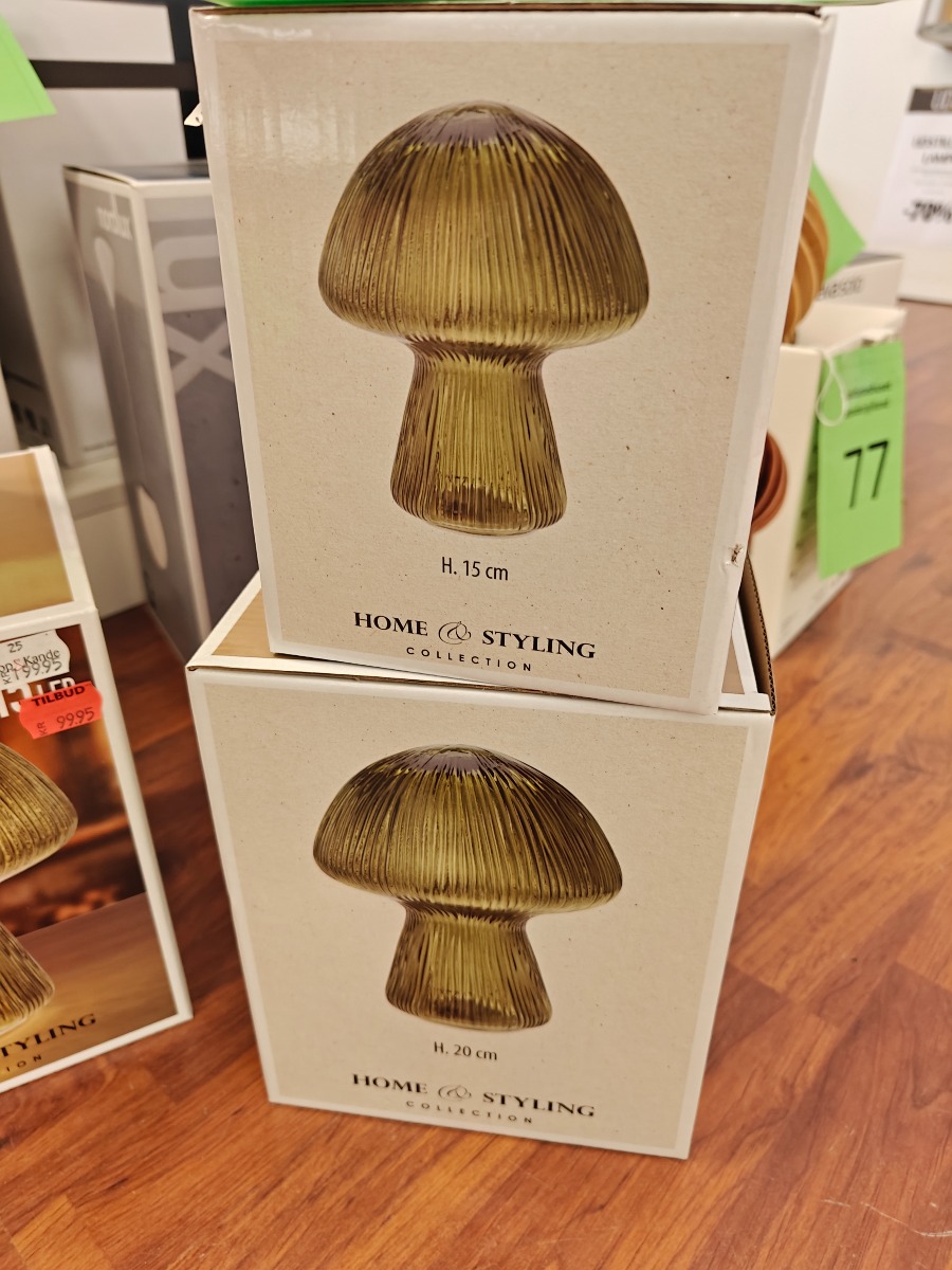 2 stk. Home Styling Collection svampelampe i grønt glas med indbygget LED-lys og timerfunktion. 15 og 20 cm. Nye og ubrugte. Oprydning fra isenkram butik.
