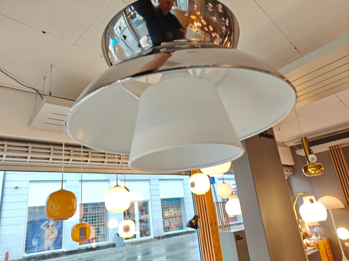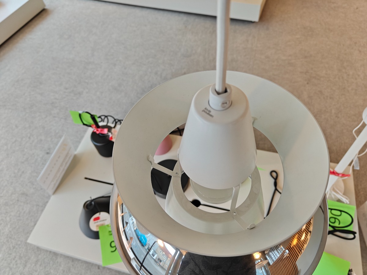 Louis Poulsen Doo-Wop pendel, blank stål. Udstillingsmodel. Oprydning fra isenkram butik.