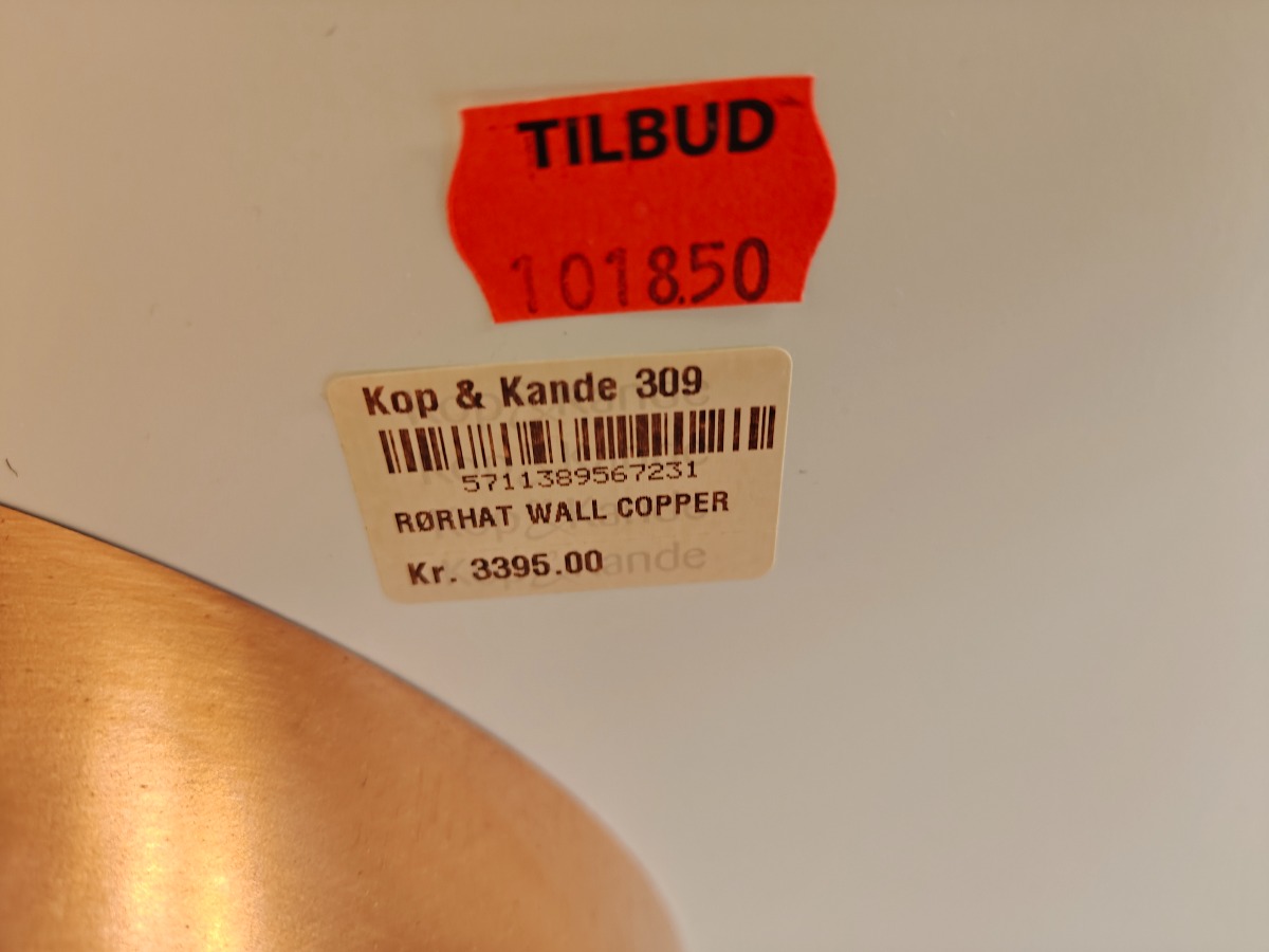 Light-Point Rørhat væglampe kobber. Design Jesper Juhl Pedersen. Udstillingsmodel. Oprydning fra isenkram butik.