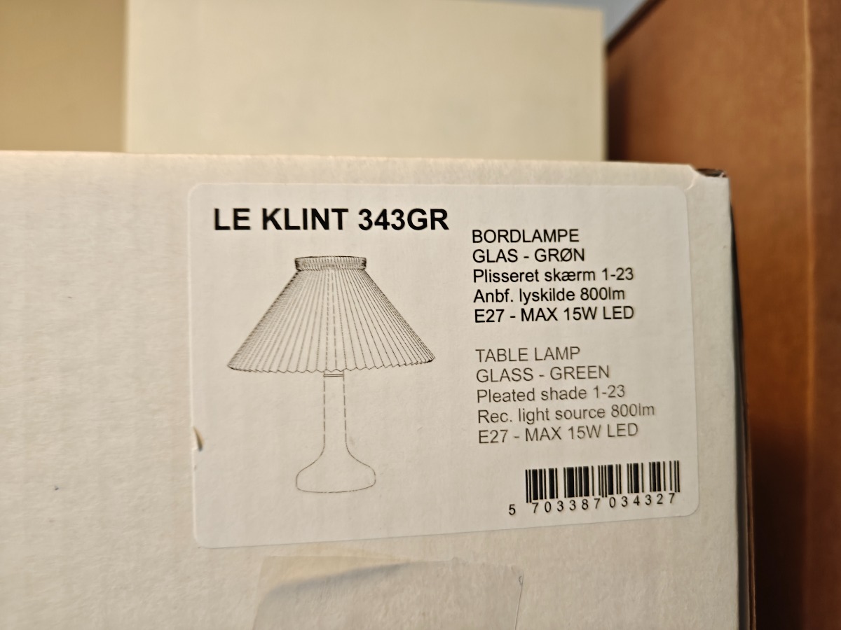 Le Klint bordlampe model 343, grøn. Ny og ubrugt. Oprydning fra isenkram butik.