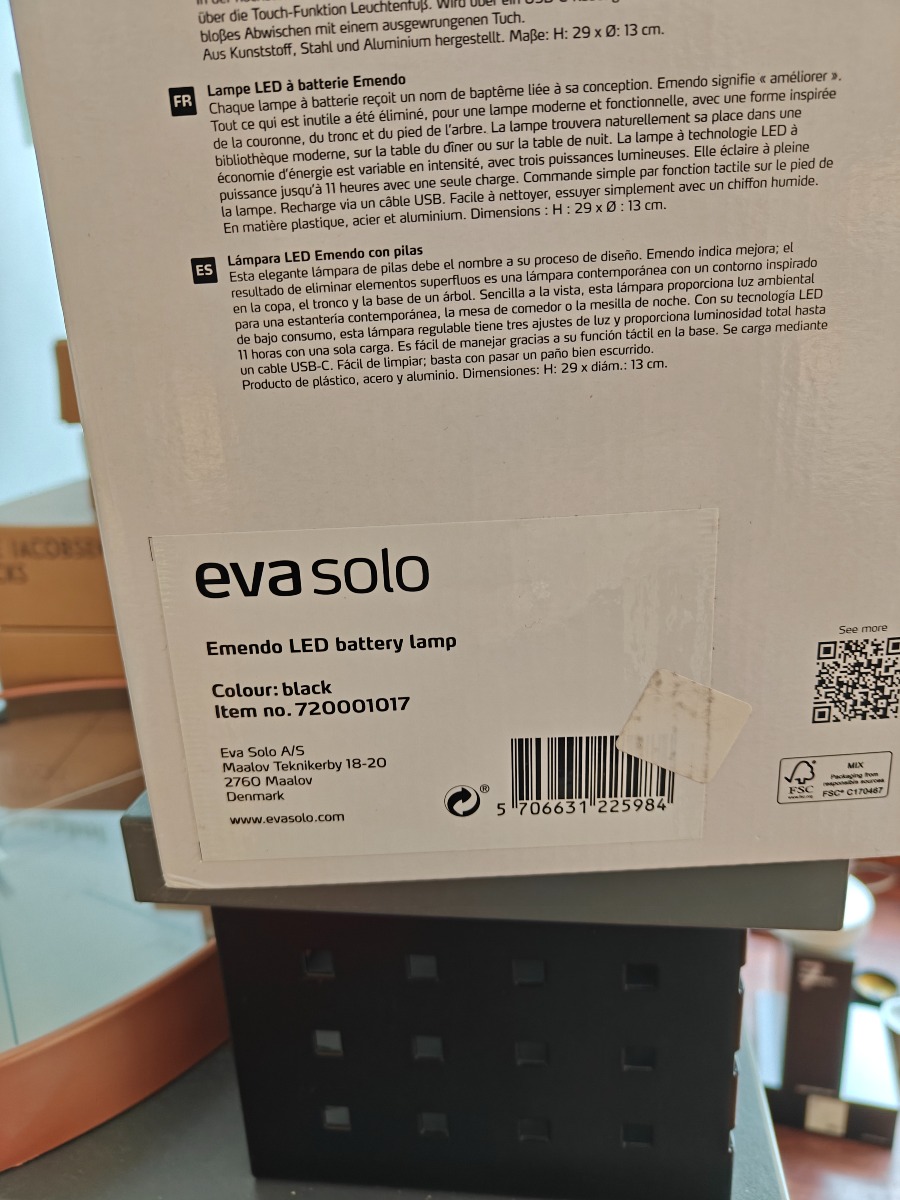 Eva Solo Emondo LED batterilampe, sort. Ny og ubrugt. Oprydning fra isenkram butik.