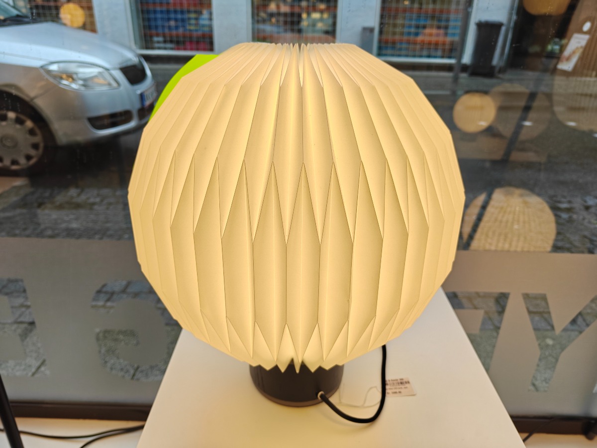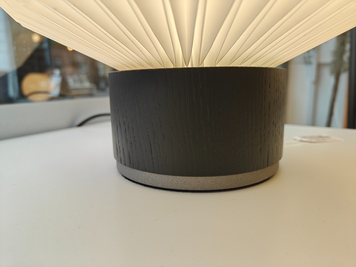 Le Klint bordlampe nr. 375 med fod af sort eg. Design Esben Klint. Udstillingsmodel. Oprydning fra isenkram butik.