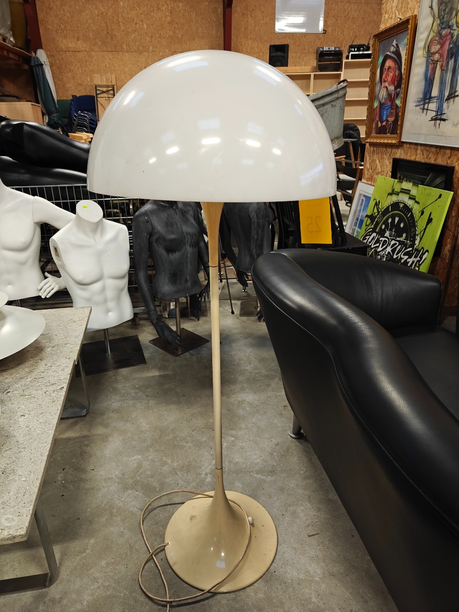 Verner Panton Panthella gulvlampe. Lampen er med defekt skærmstativ og topskrue.