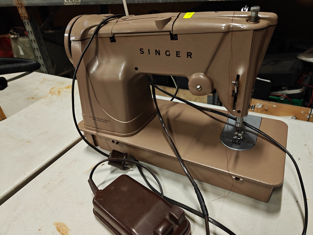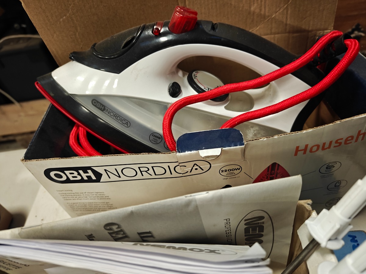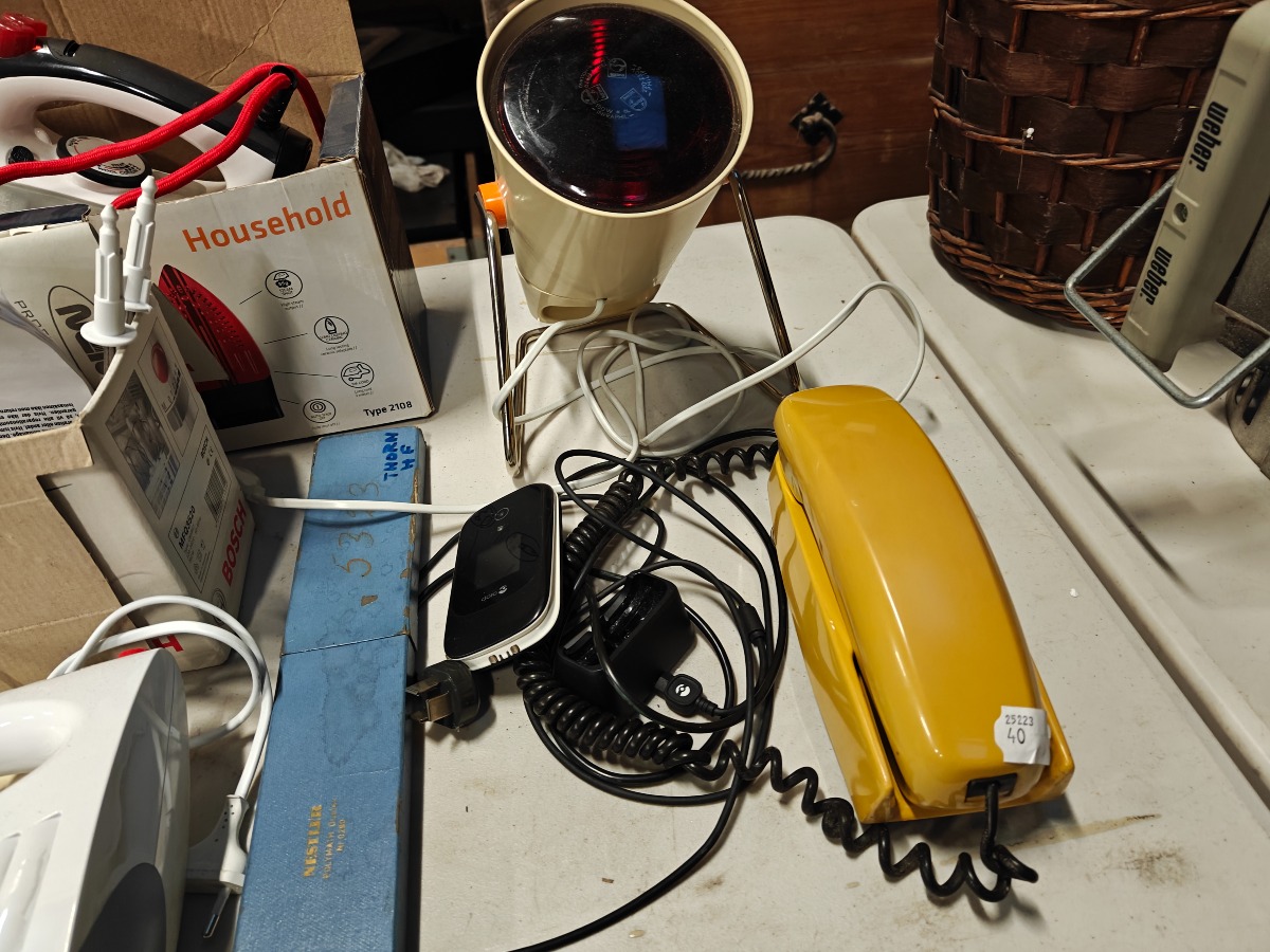 Forskelligt husholdningselektronik. Ældre Singer symaskine, OBH strygejern, håndmixer og andre effekter. Vi garanterer ikke for funktionaliteten.