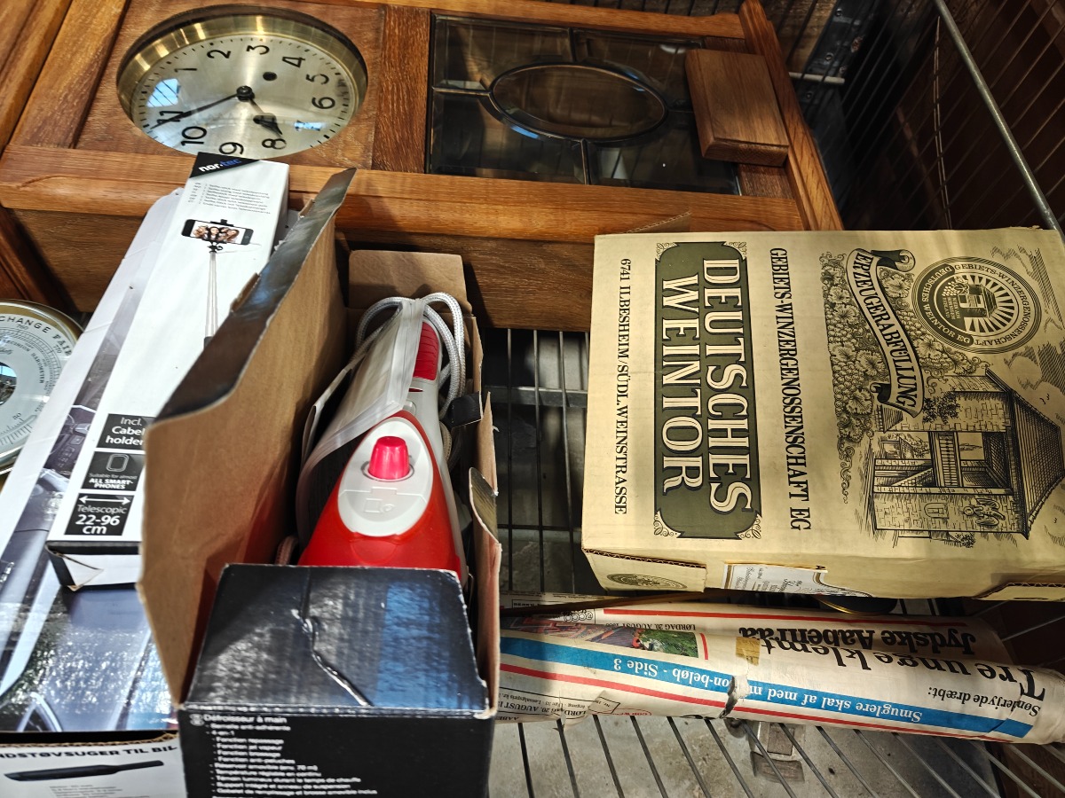 Forskelligt indbo, elektronik m.m. Alt på vognen. Vi garanterer ikke for funktionaliteten af varerne.