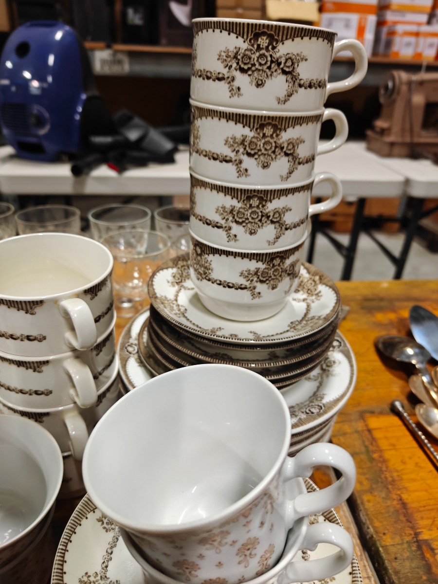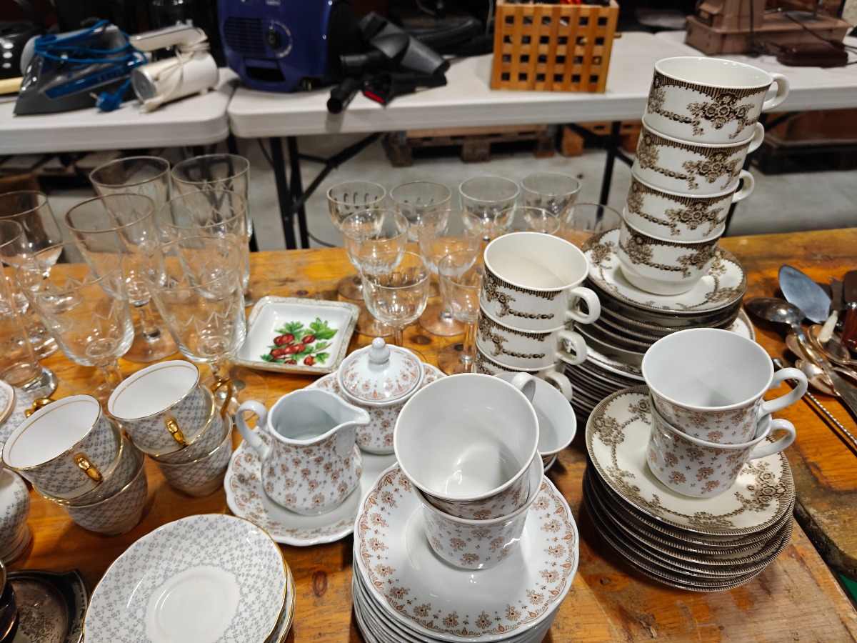 Forskelligt indbo og nips. Pyntegenstande, glasservice, kaffestel o.m.a.