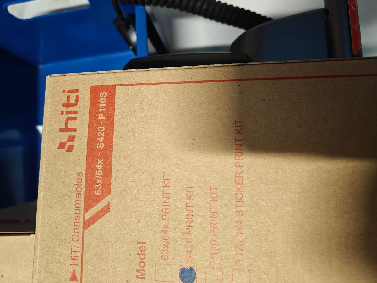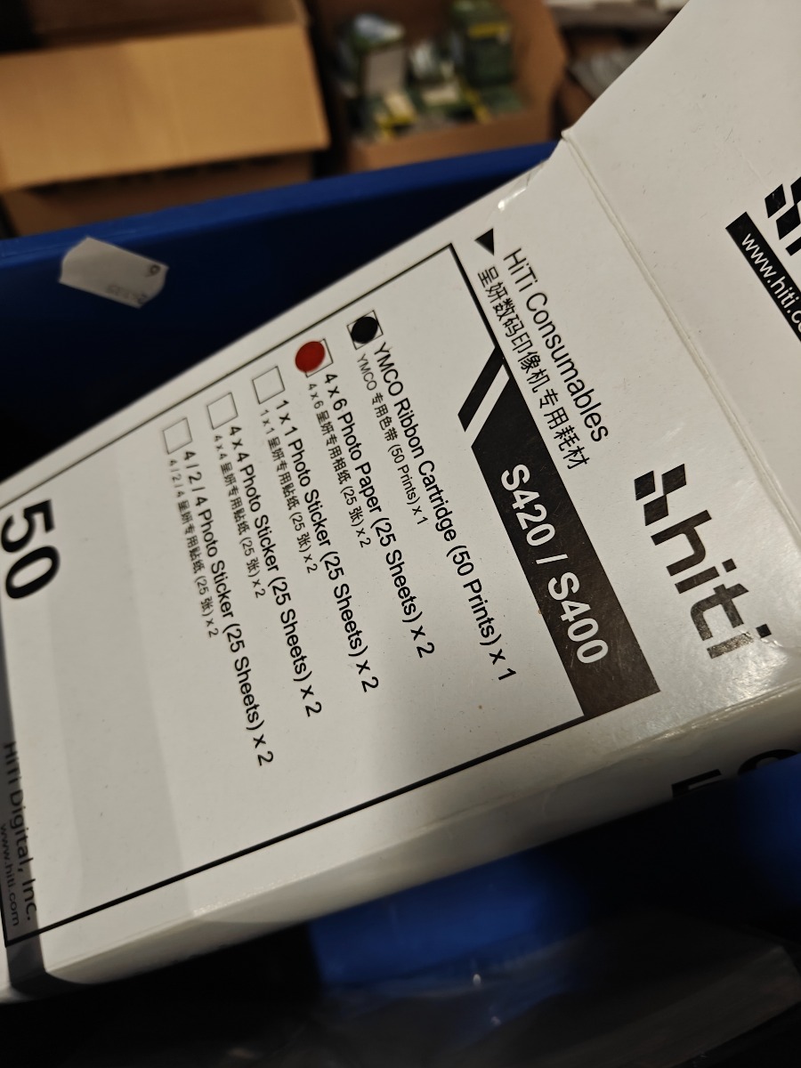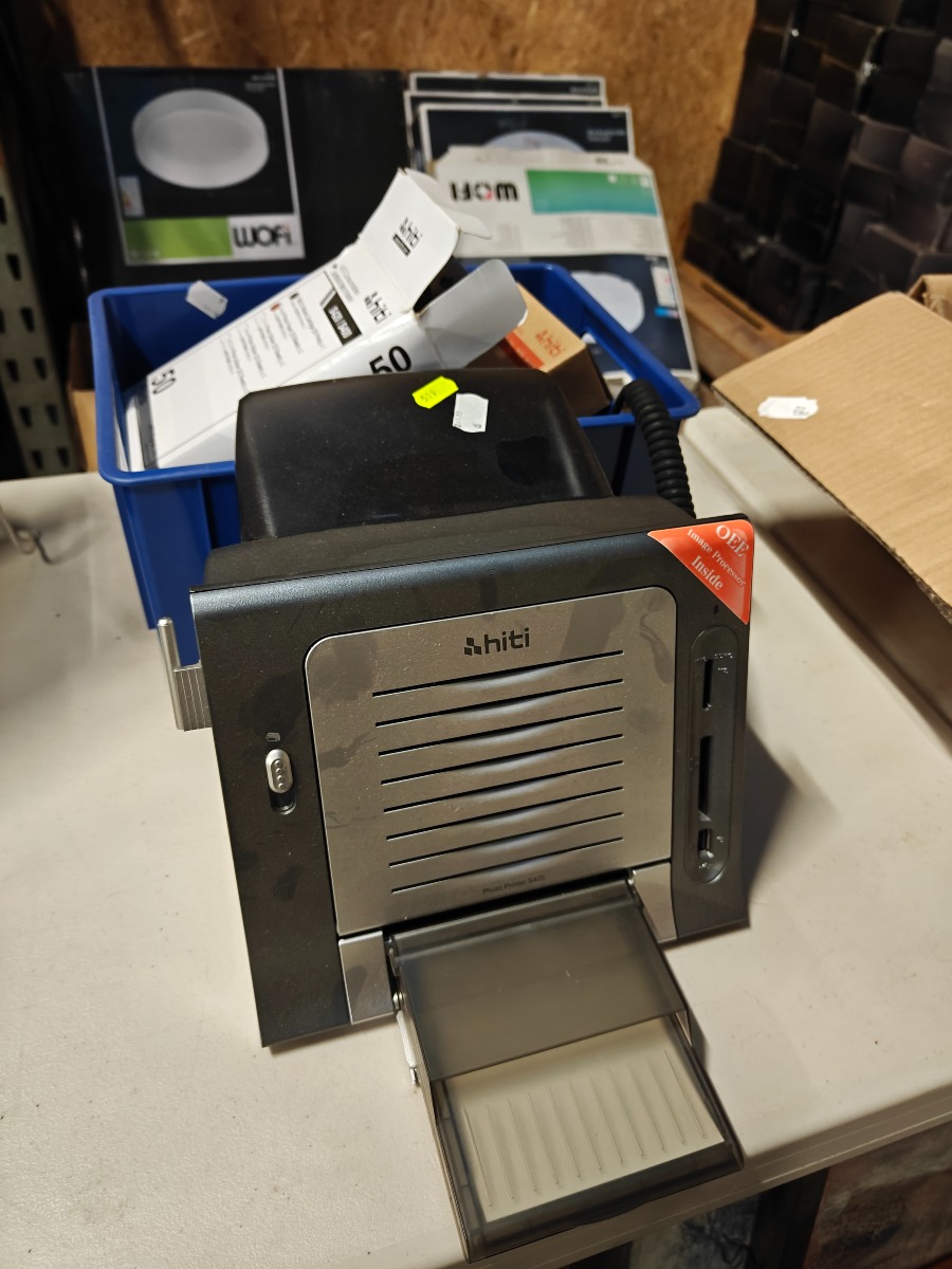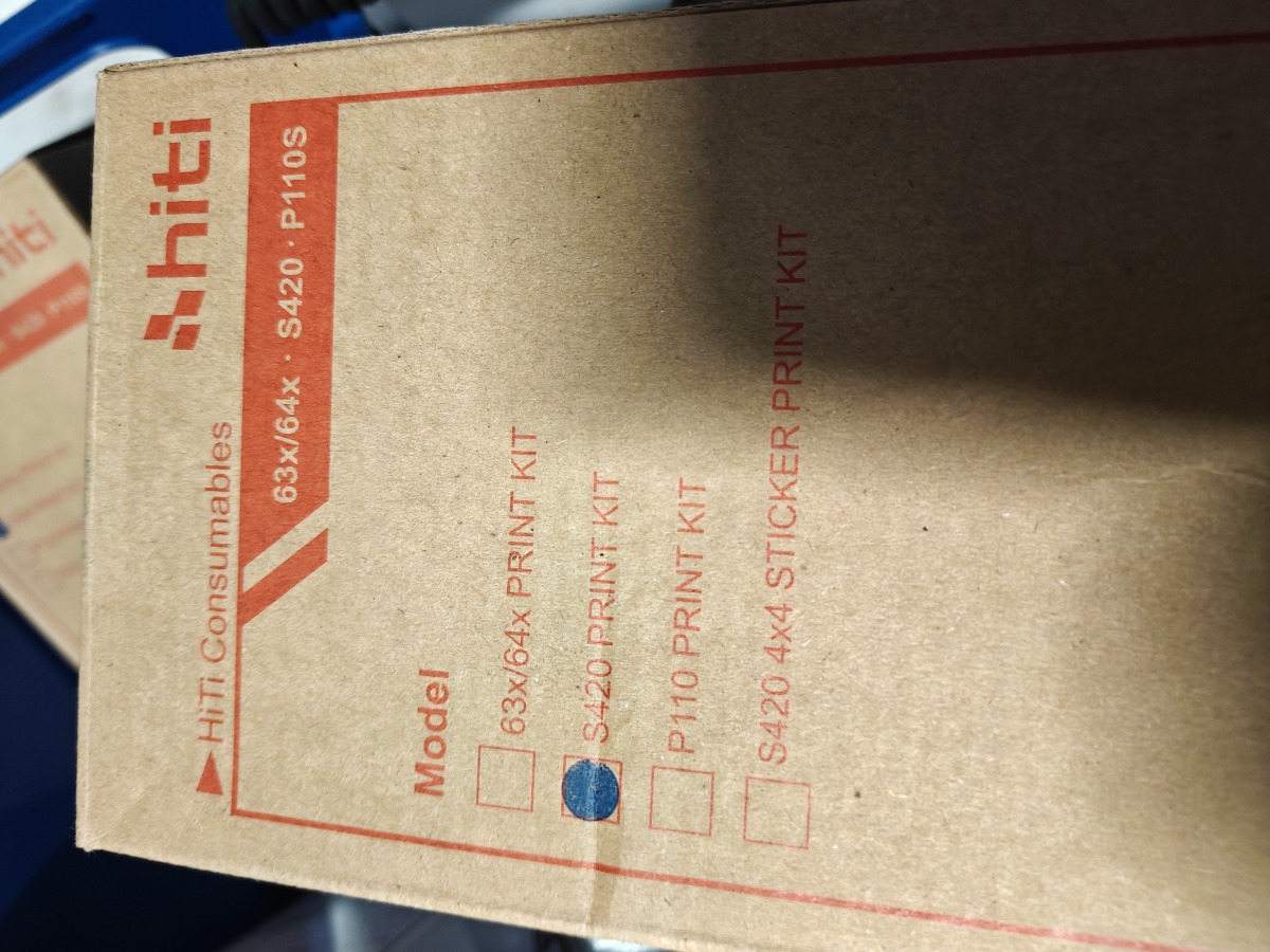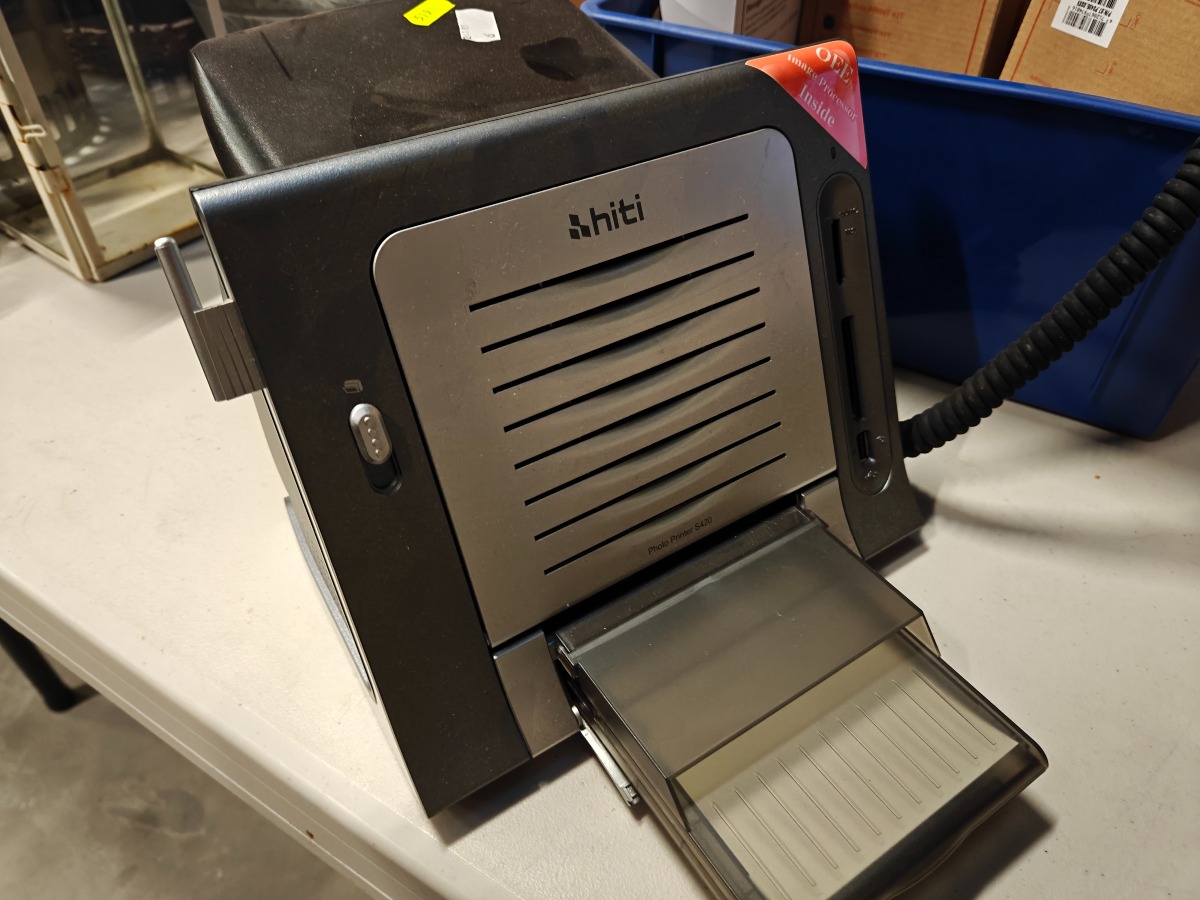 HiTi S420 fotoprinter samt æsker med fotopapir. Vi garanterer ikke funktionaliteten.