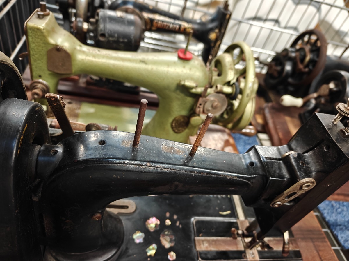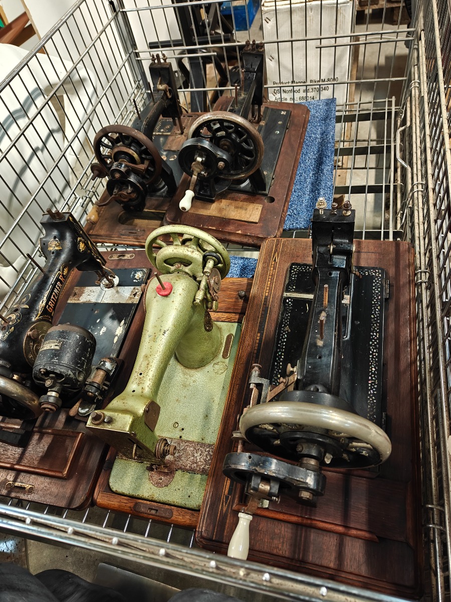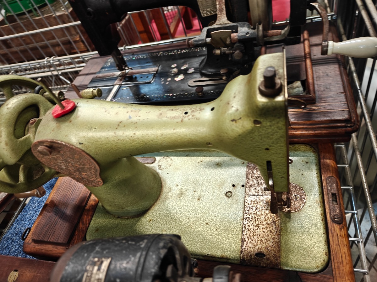 Samling gamle symaskiner. Forskellige fabrikater. Der garanteres ikke for funktionalitet og eventuelle mangler.