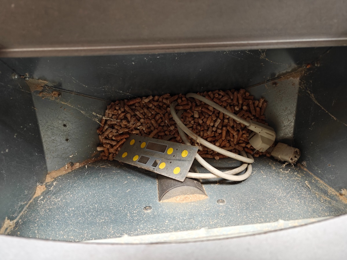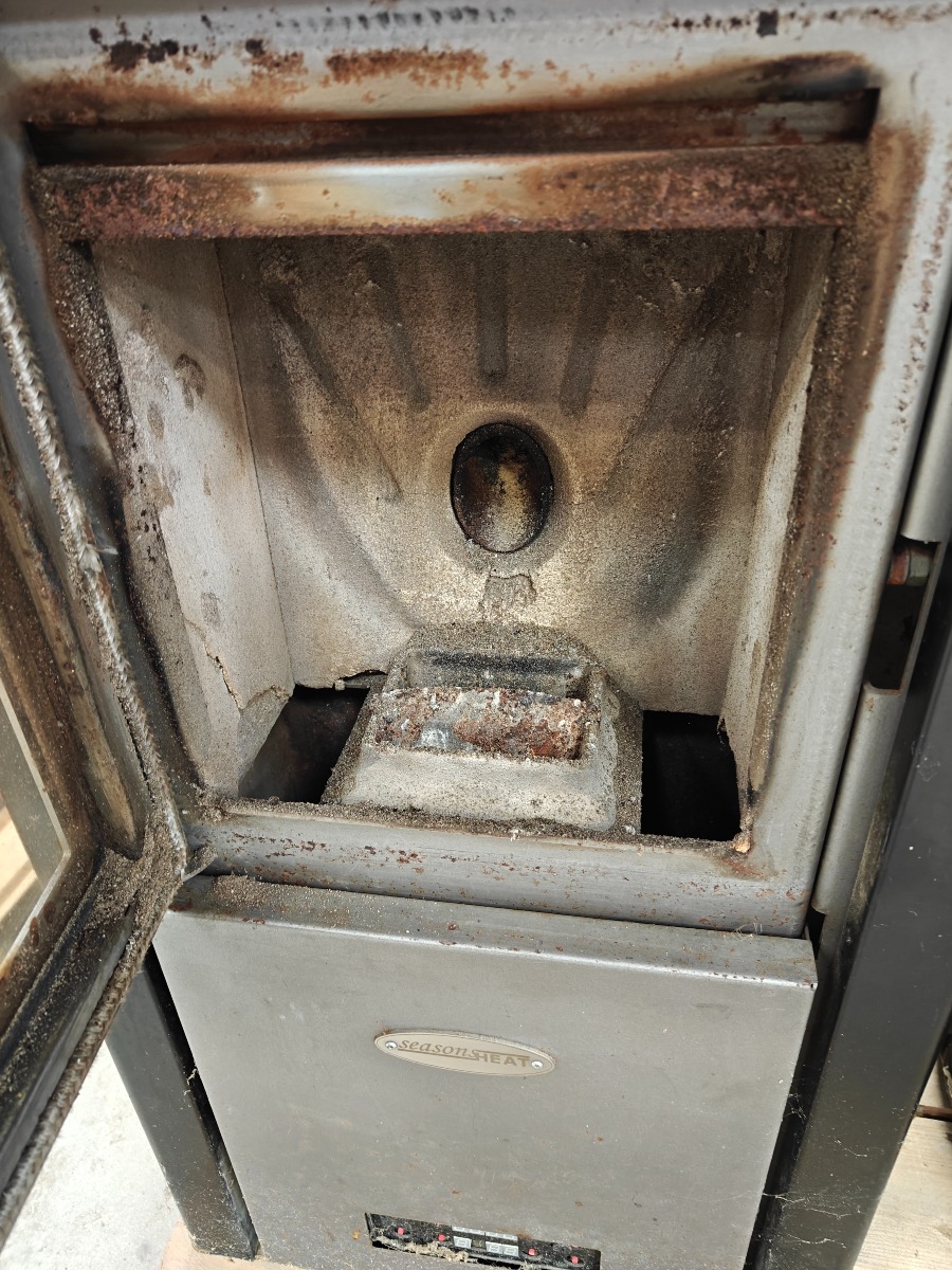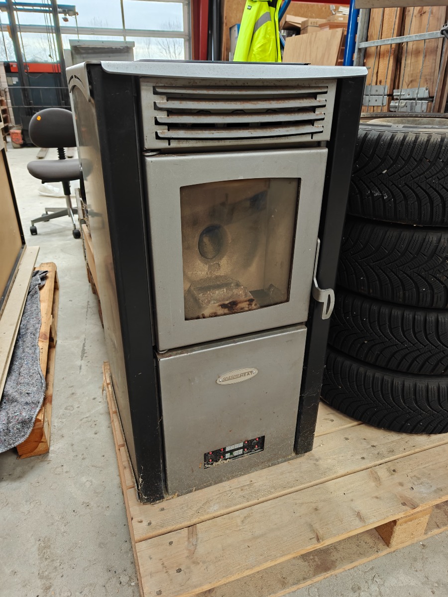 Seasons Heat pilleovn. Ovnen er brugt og fungerede ved nedtagningen. Plade til knapmodul nederst på fronten er løst, men medfølger. Vi garanterer ikke for funktionaliteten.