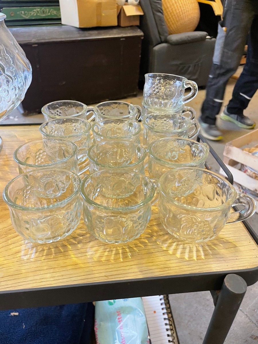 Punch bowle med plast øse og 13 kopper