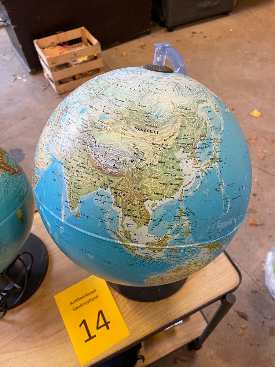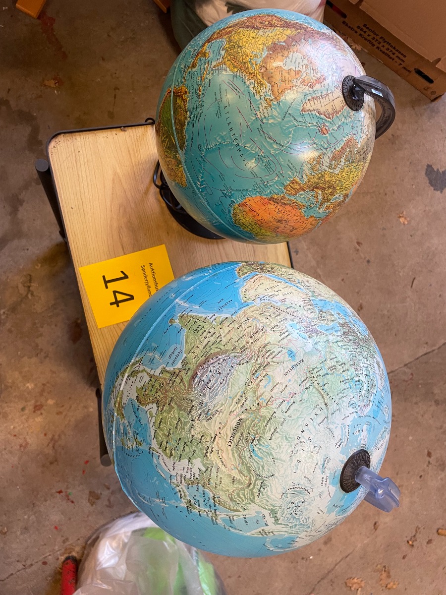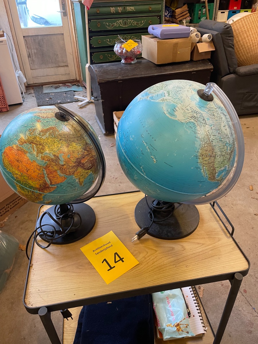 2 x globus med lys. Den ene er fra Scanglobe. Den anden ukendt. Vi garanterer ikke for funktionaliteten. Varerne brugte og med forventelige brugsspor.