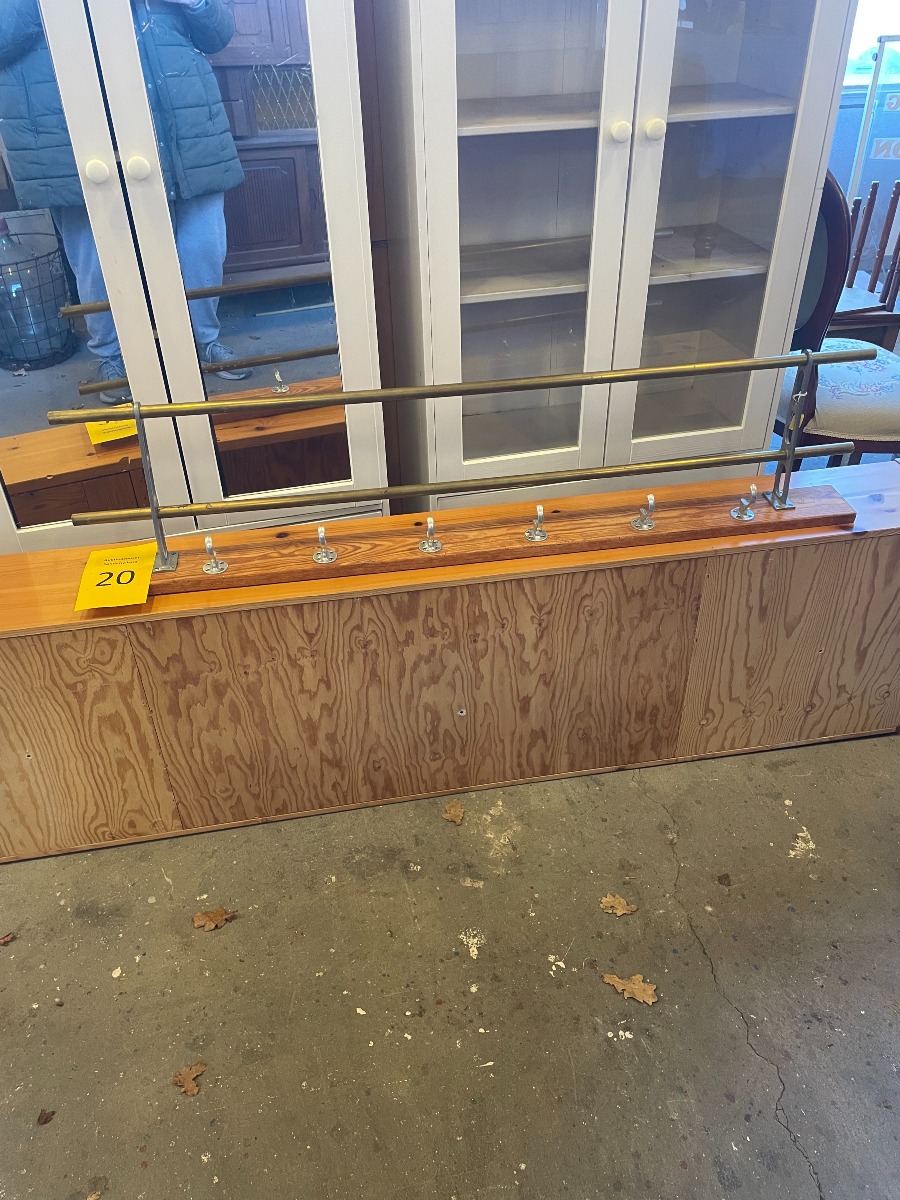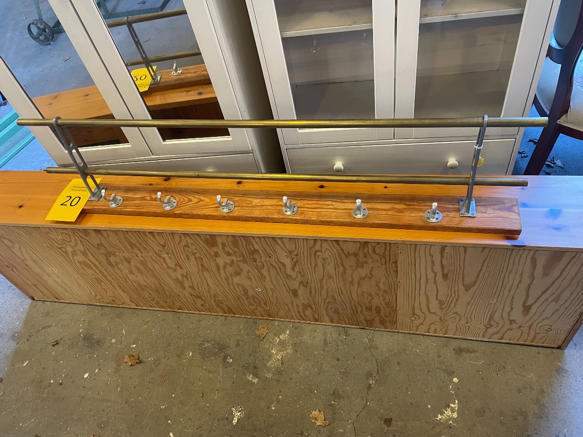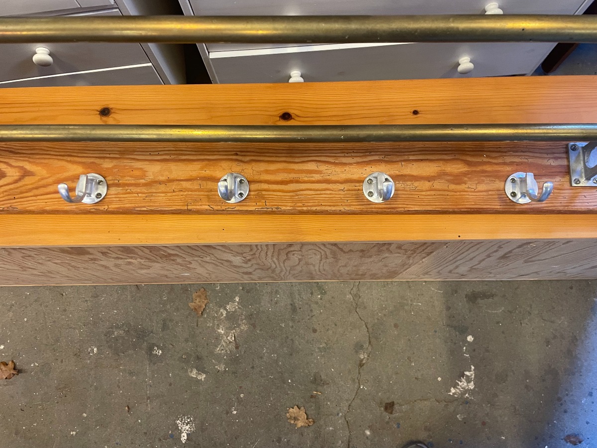 Garderobestang med hattehylde i fyrretræ med 6 knager samt.