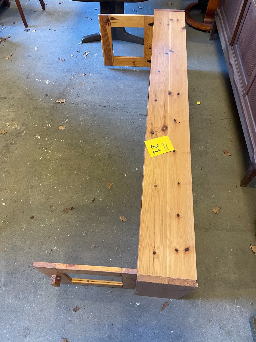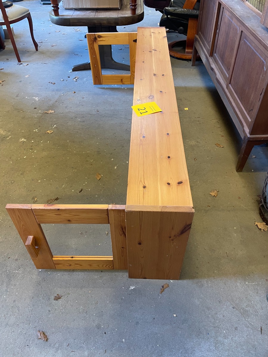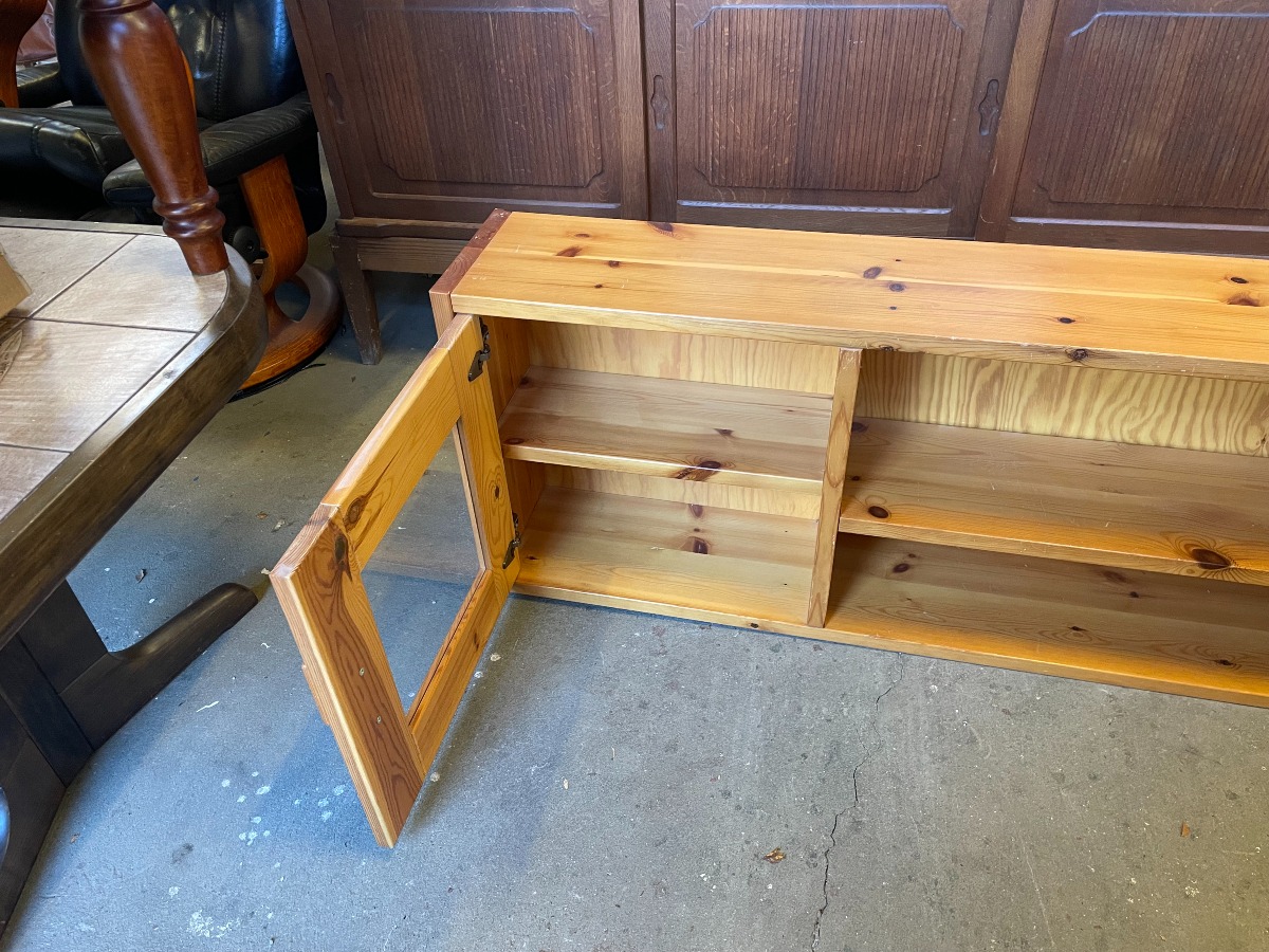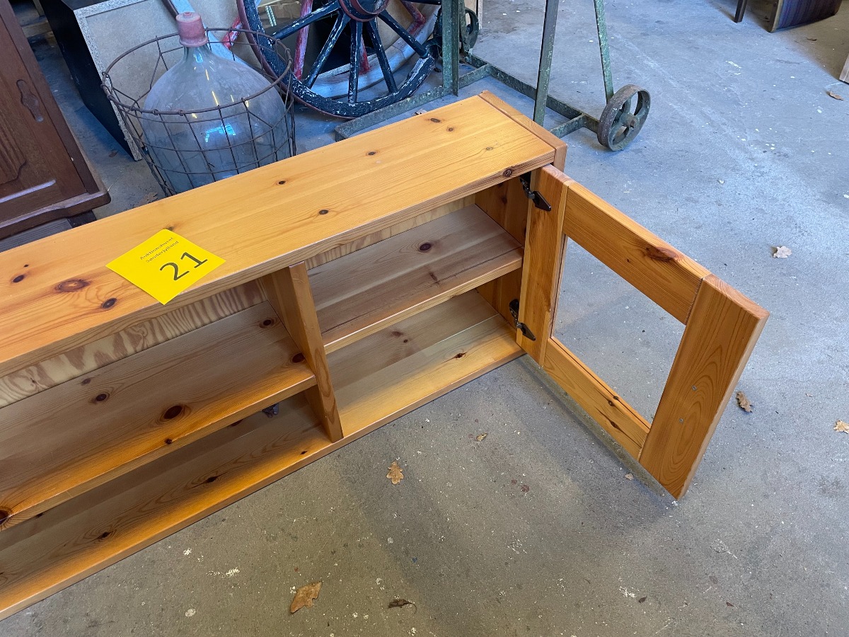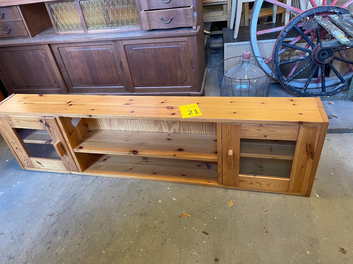 Midterdel med hylde, flankeret af 2 vitrineskabe. 190 x 50 x 23