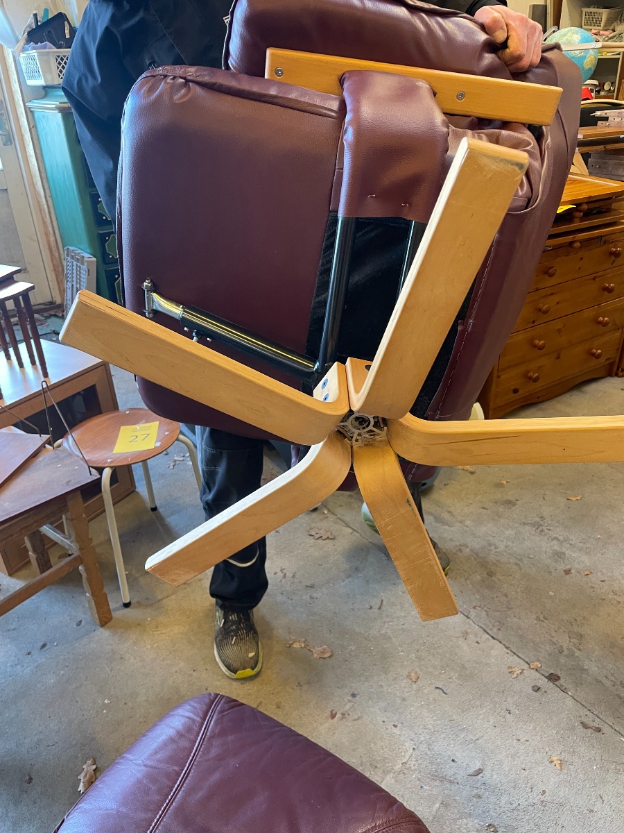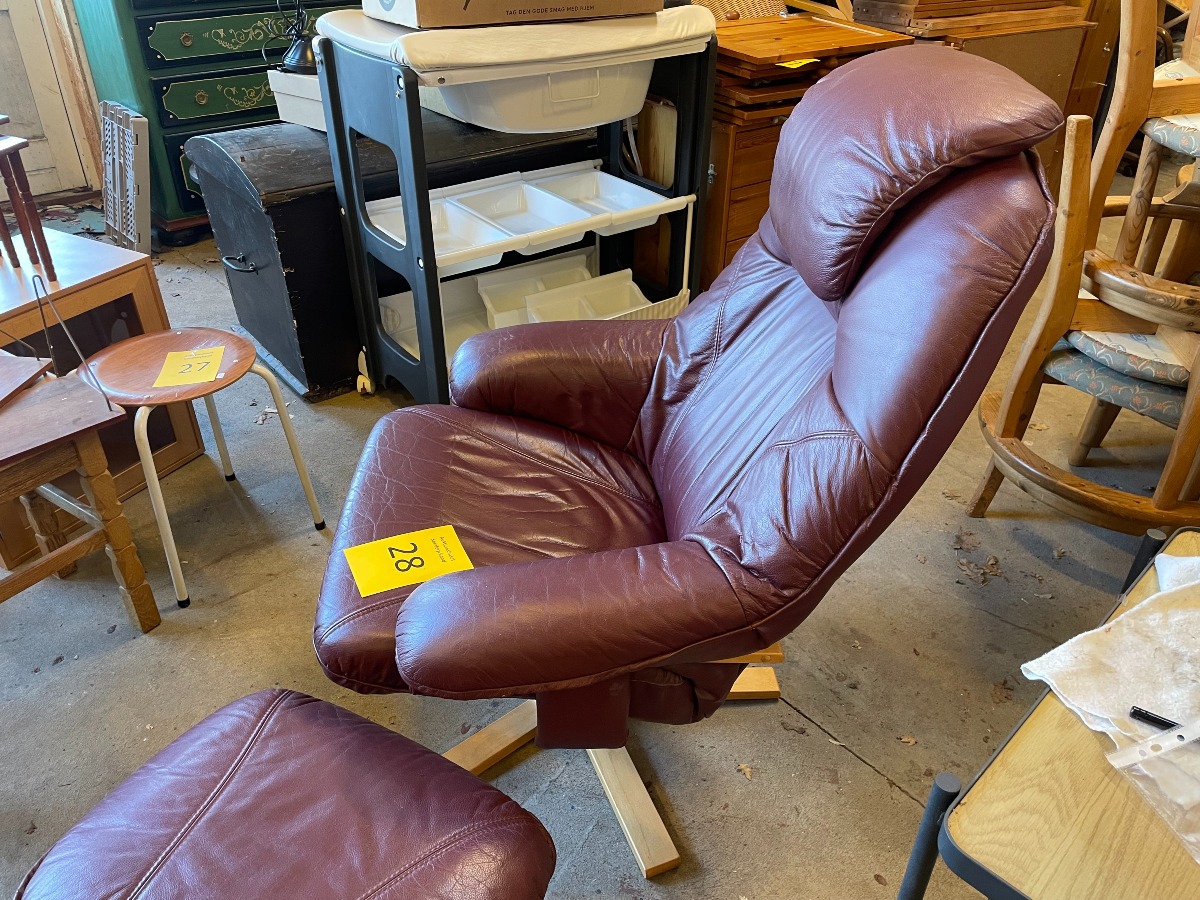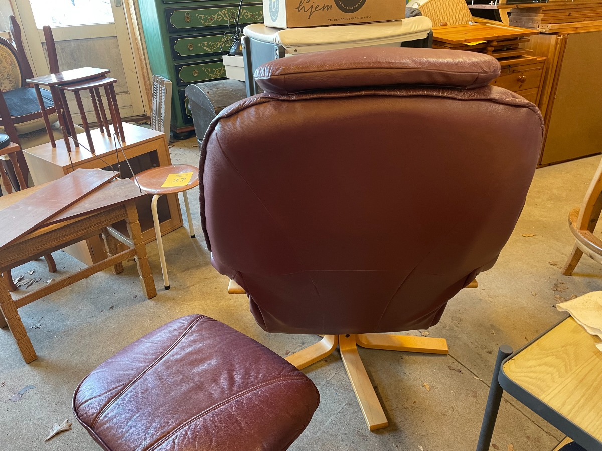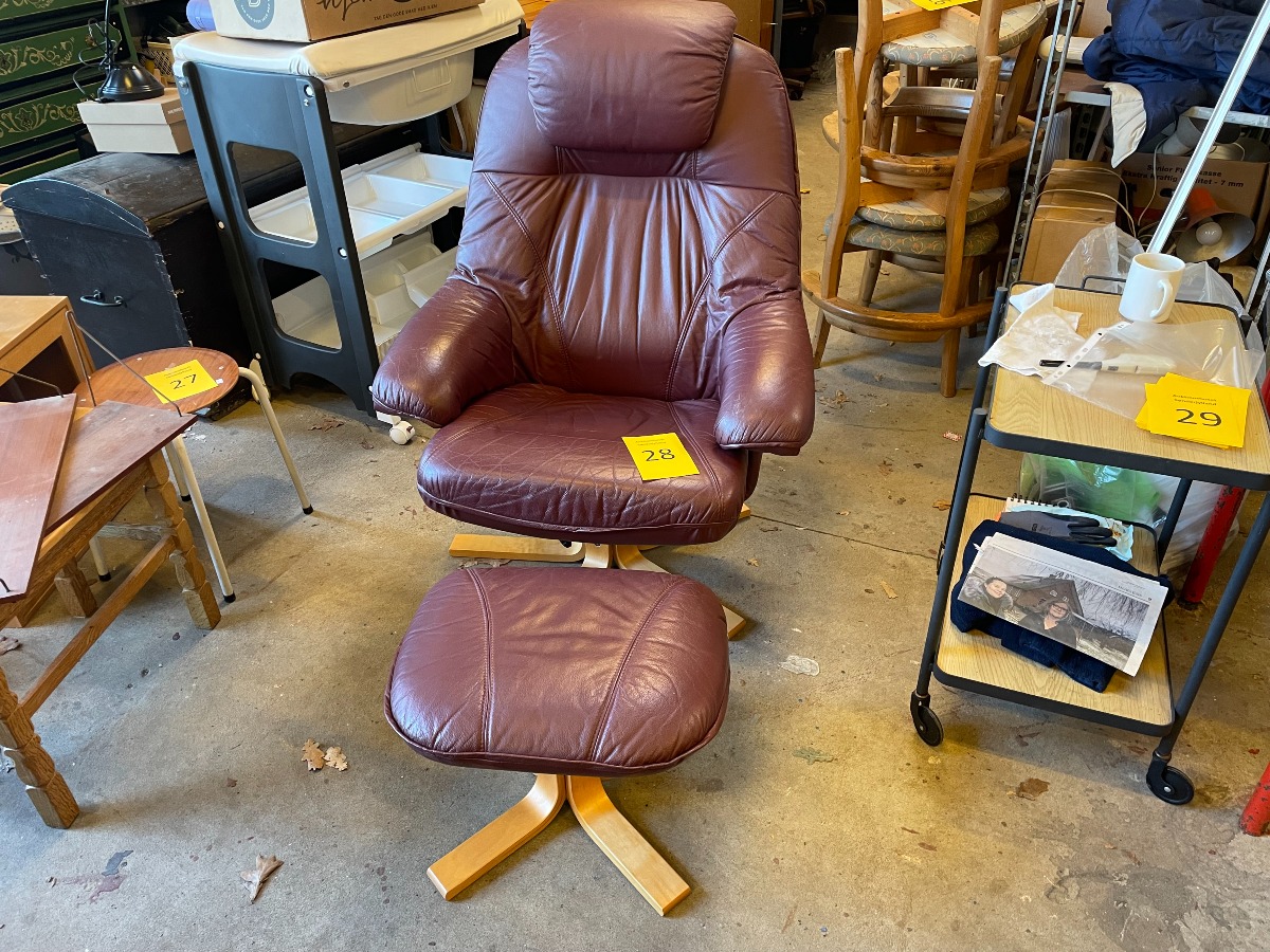Lænestol med skammel. Monteret med bourdeaux læder.