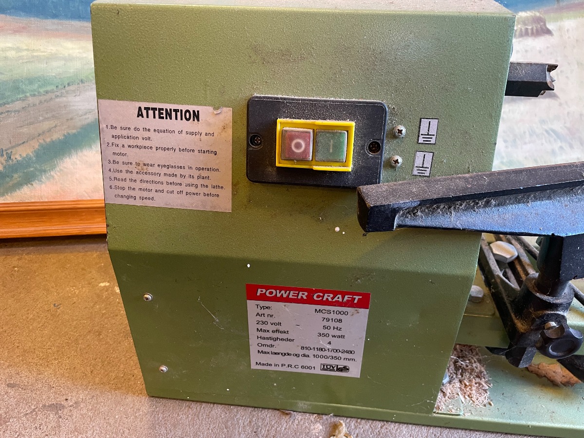 Power craft mcs1000 trædrejebænk. 230v og max effekt 350w. Vi garanterer ikke for funktionaliteten. Varen er brugt og med forventelige brugsspor.
