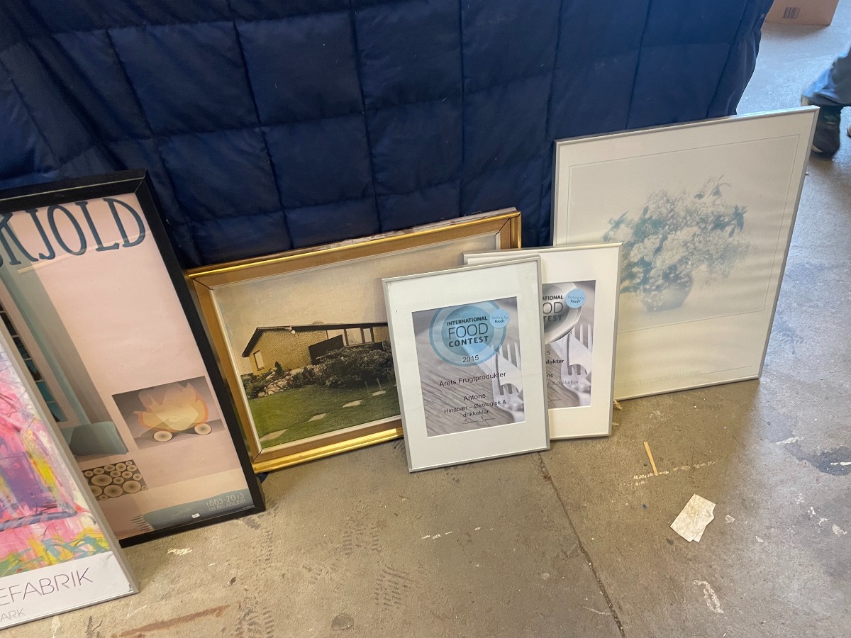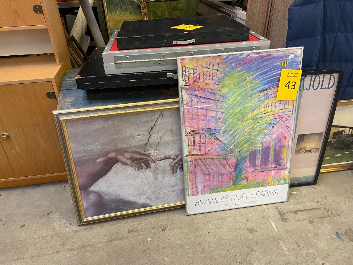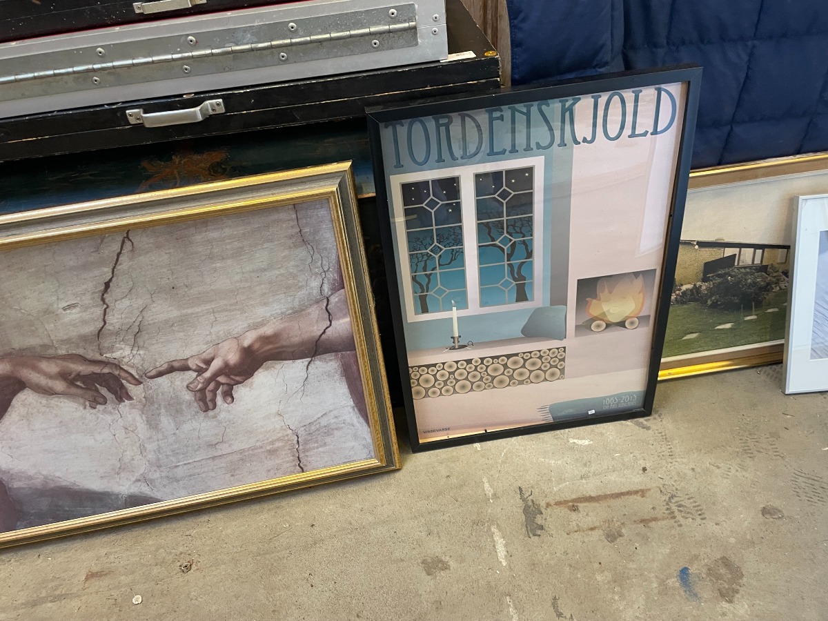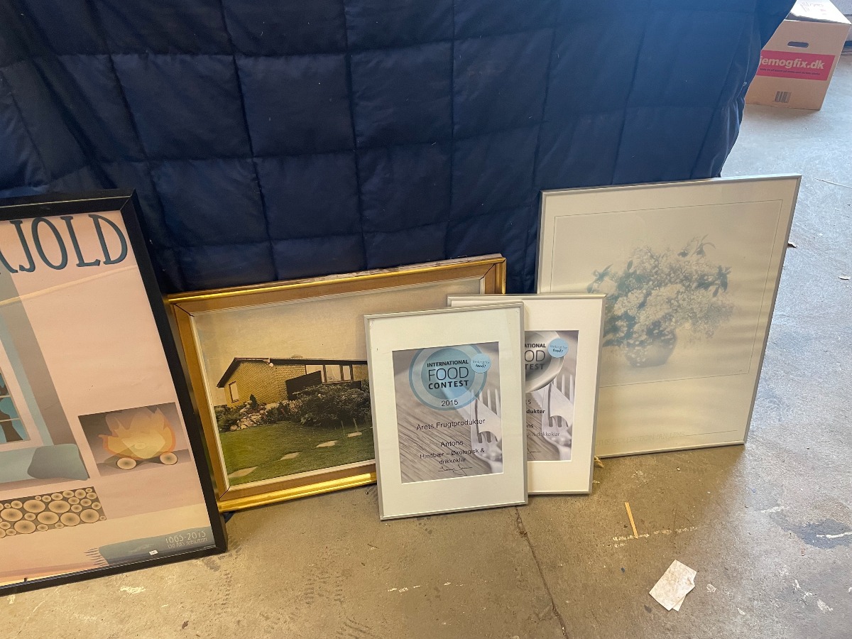 7 plakater/tryk i rammer. Enkelte brugsspor. Mål på den største 90 x 65cm