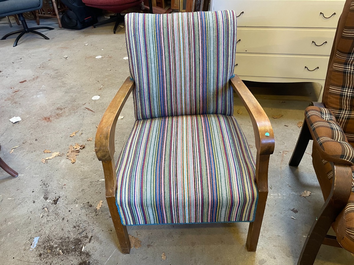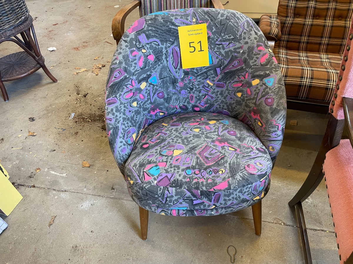 Lænestol med spraglet betræk B 57 x D 63 H: 79 sædehøde 41cm