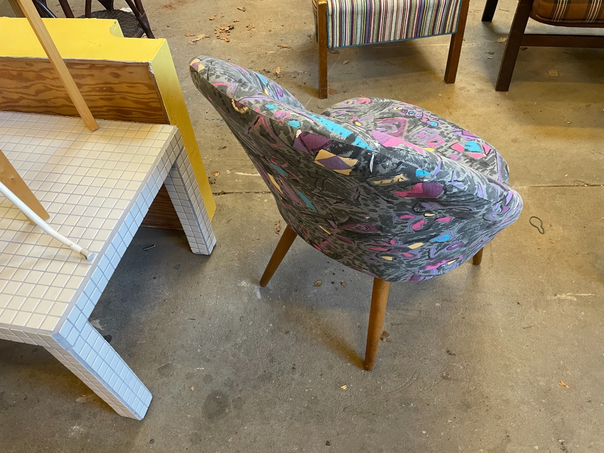 Grydestol ombetrukket med 90ér betræk. B 64 x D: 60 H: 74 sædehøjde 41cm