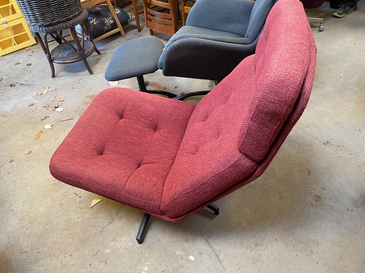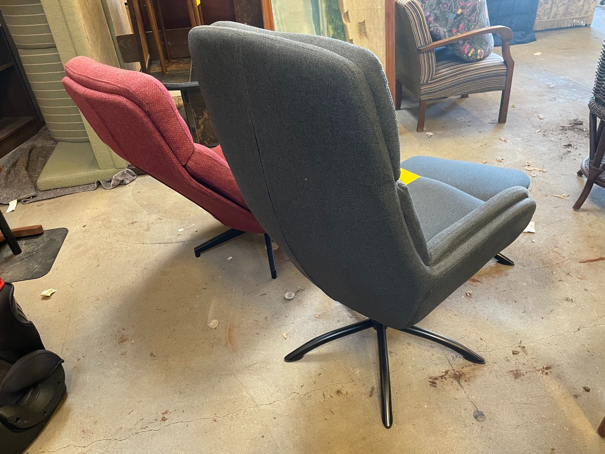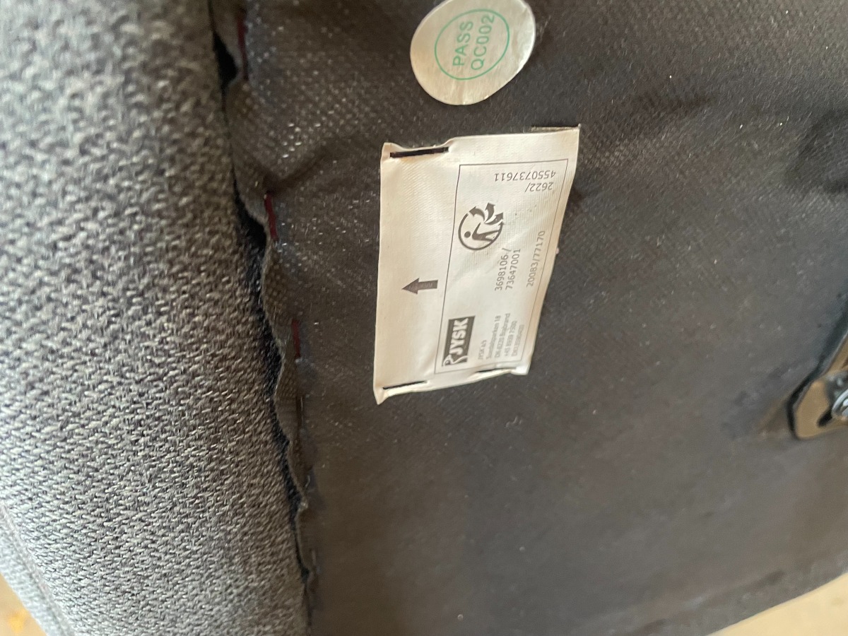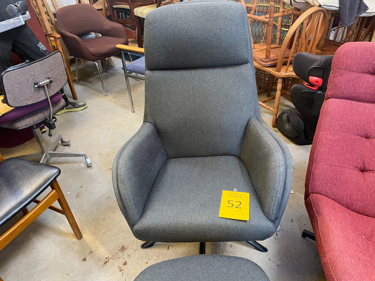 1 TANKEDAL lænestol med skammel fra JYSK  i mørkegrå stof.