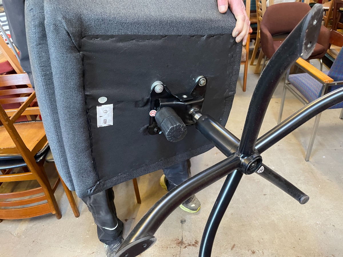 Drejefod i stål og trinløs vippefunktion. Mål: Højde 107cm x Dybde 119 x Bredde 70cm