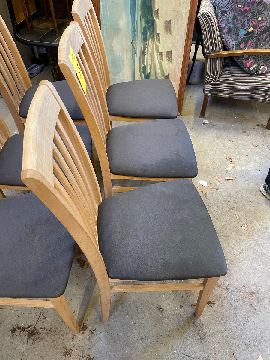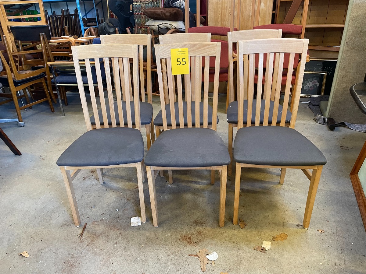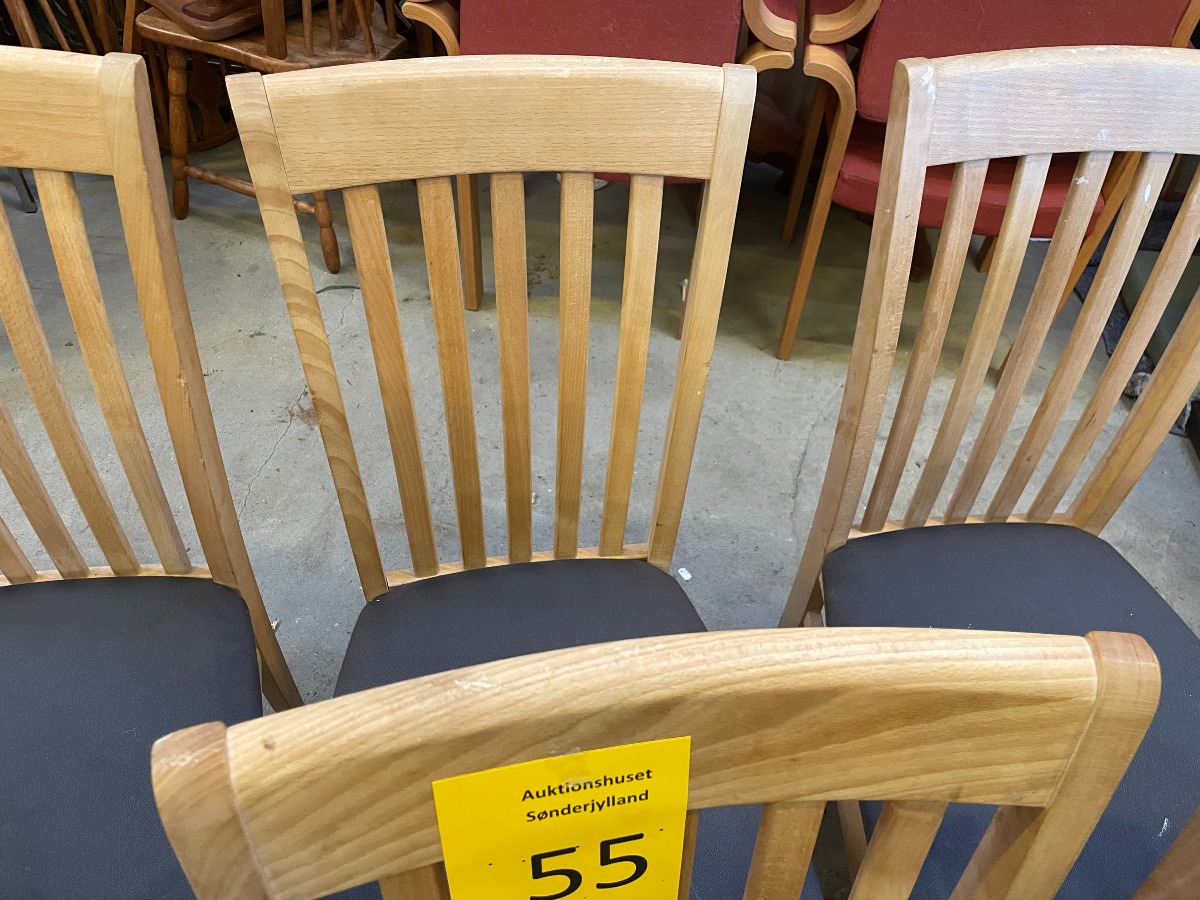 6 spisestuestole med stel i bøg, og mørkt betræk