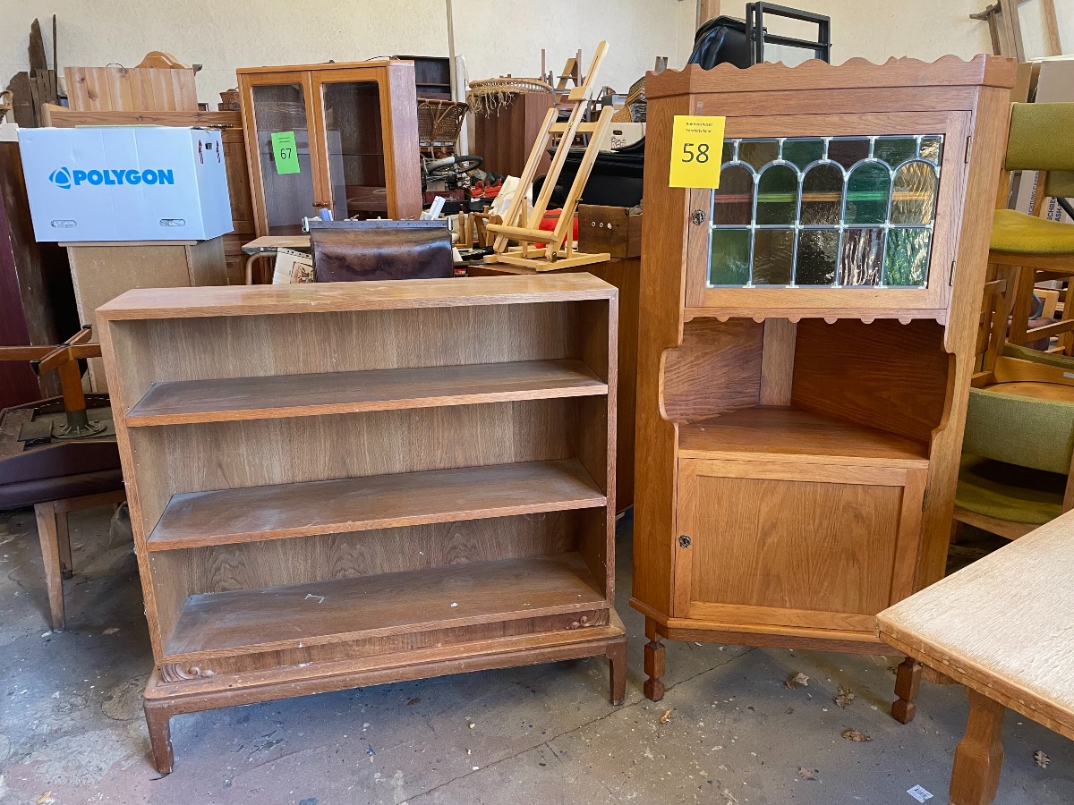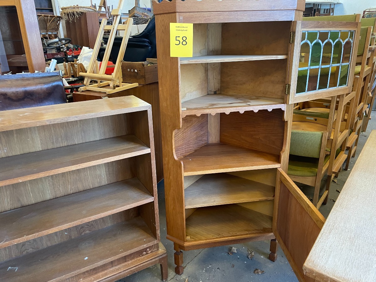 Hjørneskab fremstår i pæn stand, dog har den skjolder på hylderne bag de blyindfattede ruder. Mål. B: 76 x D: 43 H 158 cm.