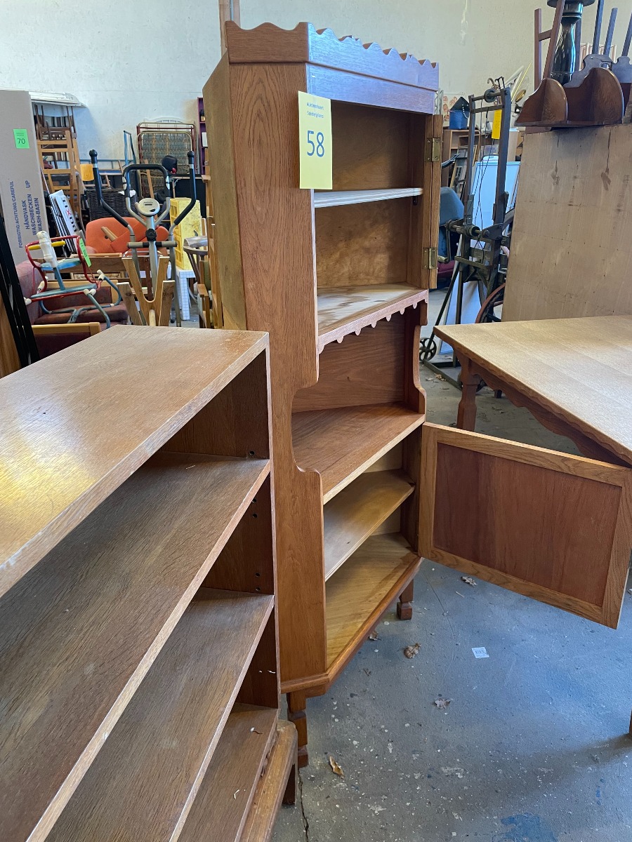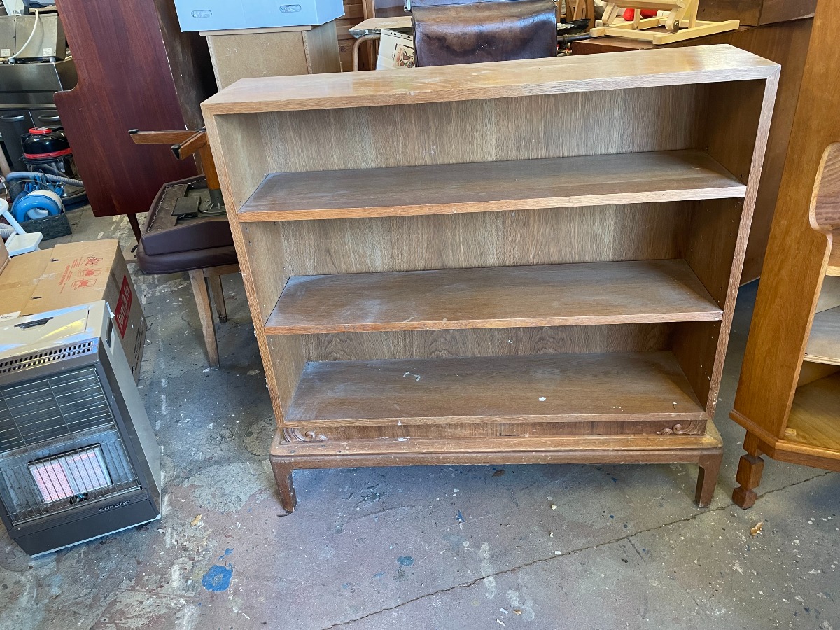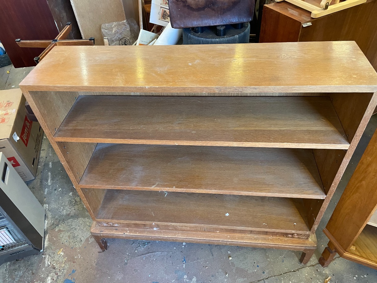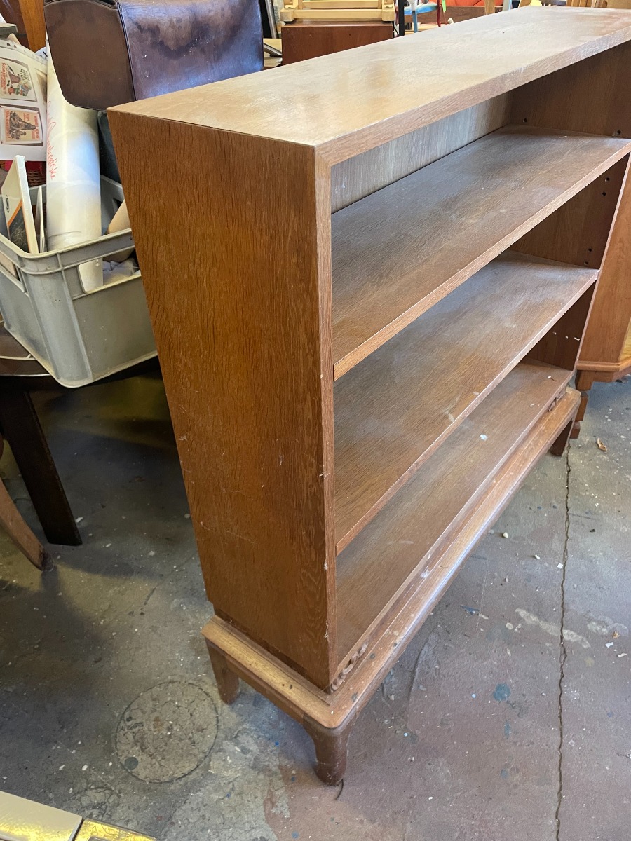 Reol / bogskab i eg. Fremstår i god stand, men trænger til rengøring. Mål: B117 x D: 31 X H: 111 cm