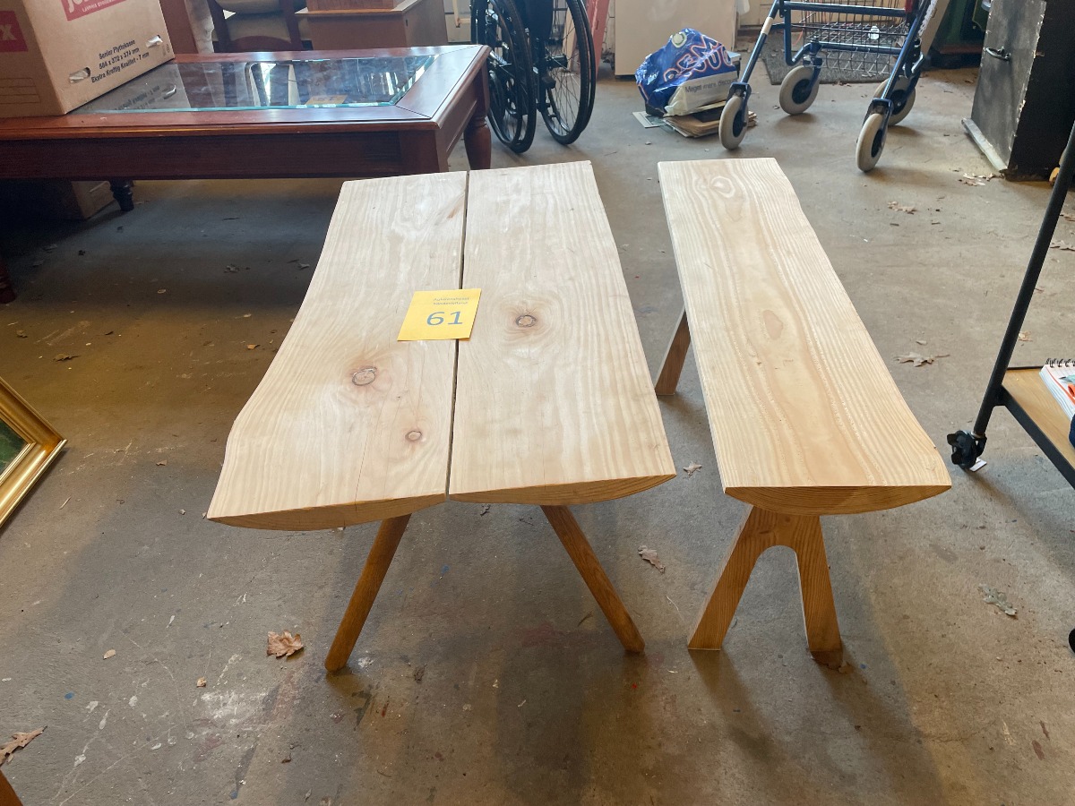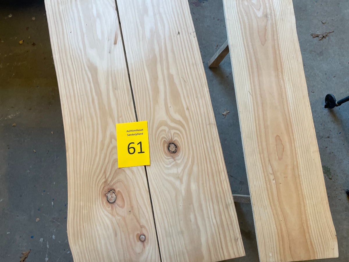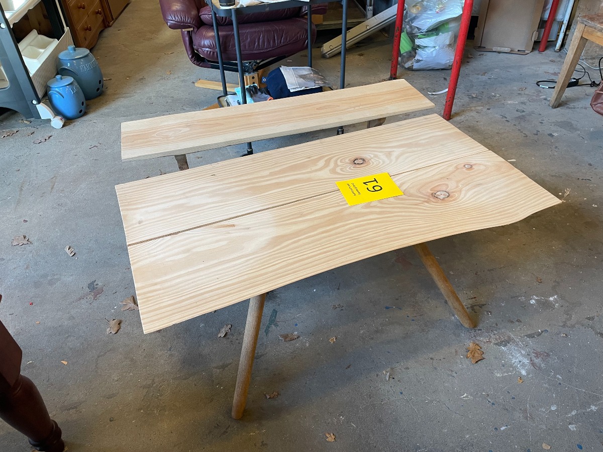 2 hjemmelavede sideborde af fyr. Topplade af høvlede planker. 50 x 100 x 50 cm for bord med 2 planker.