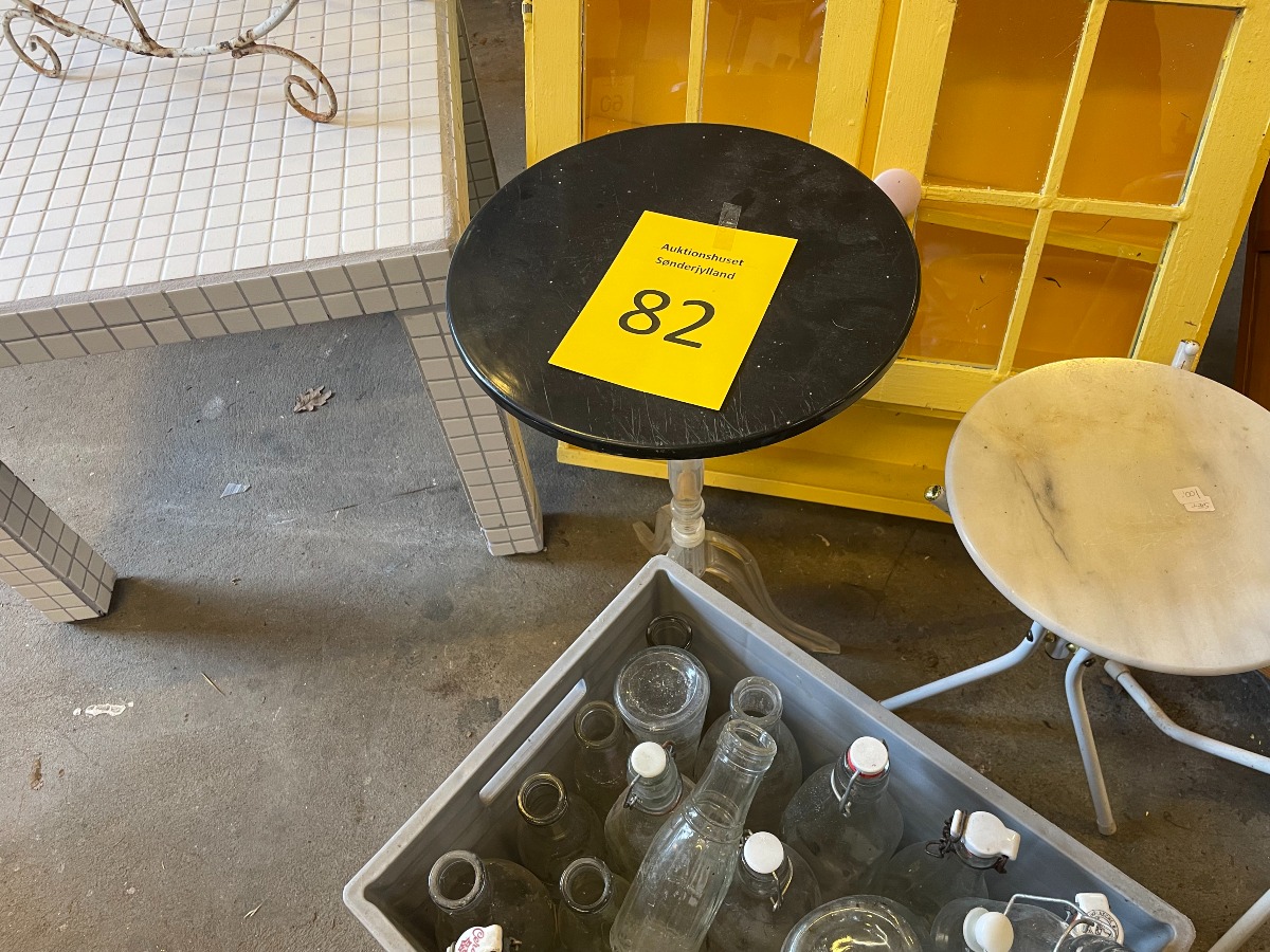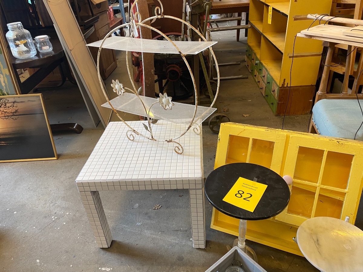 1 lille sidebord iḿed hvide mosaik fliser