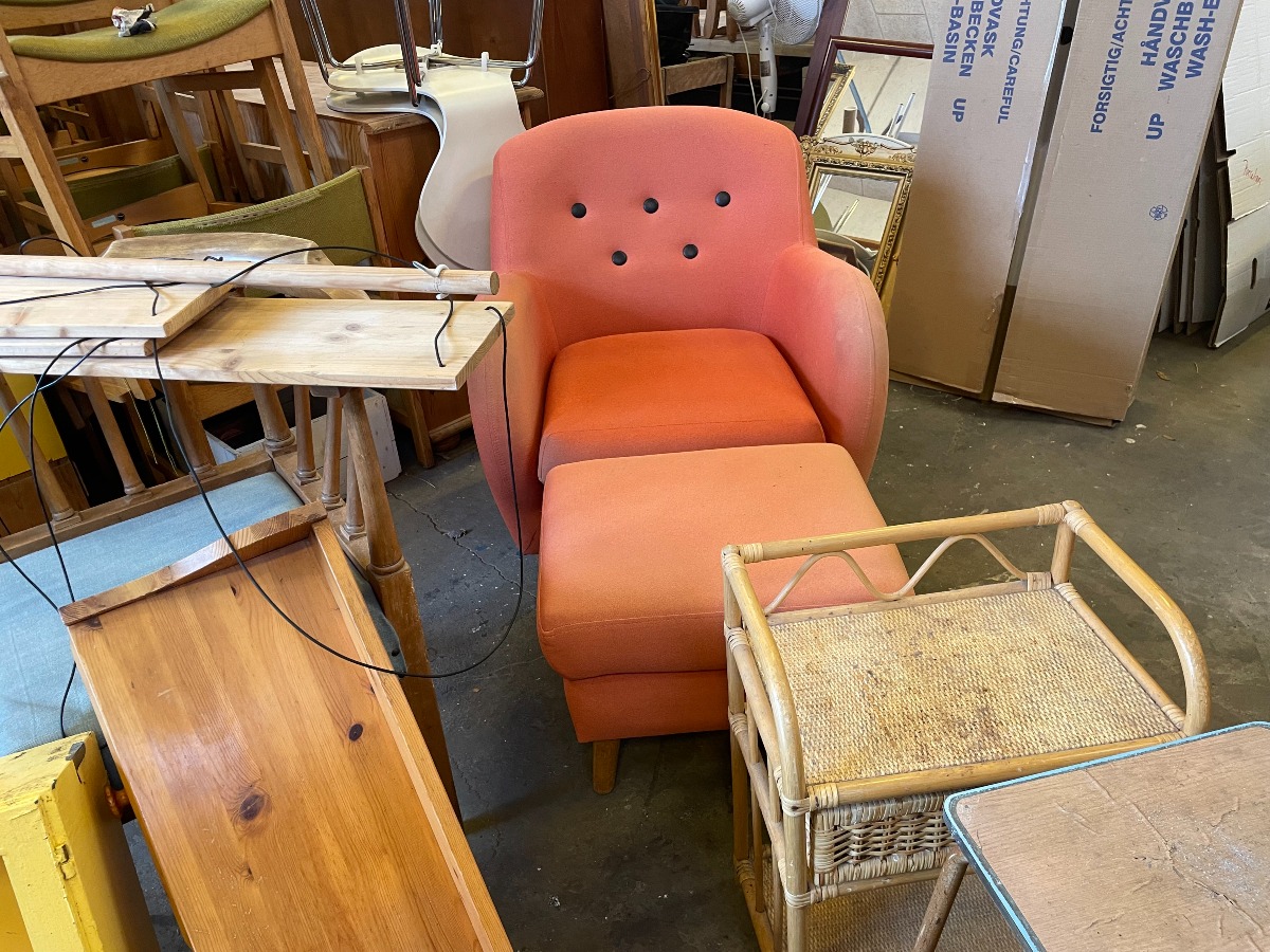 1 orangte lænestol med skammel