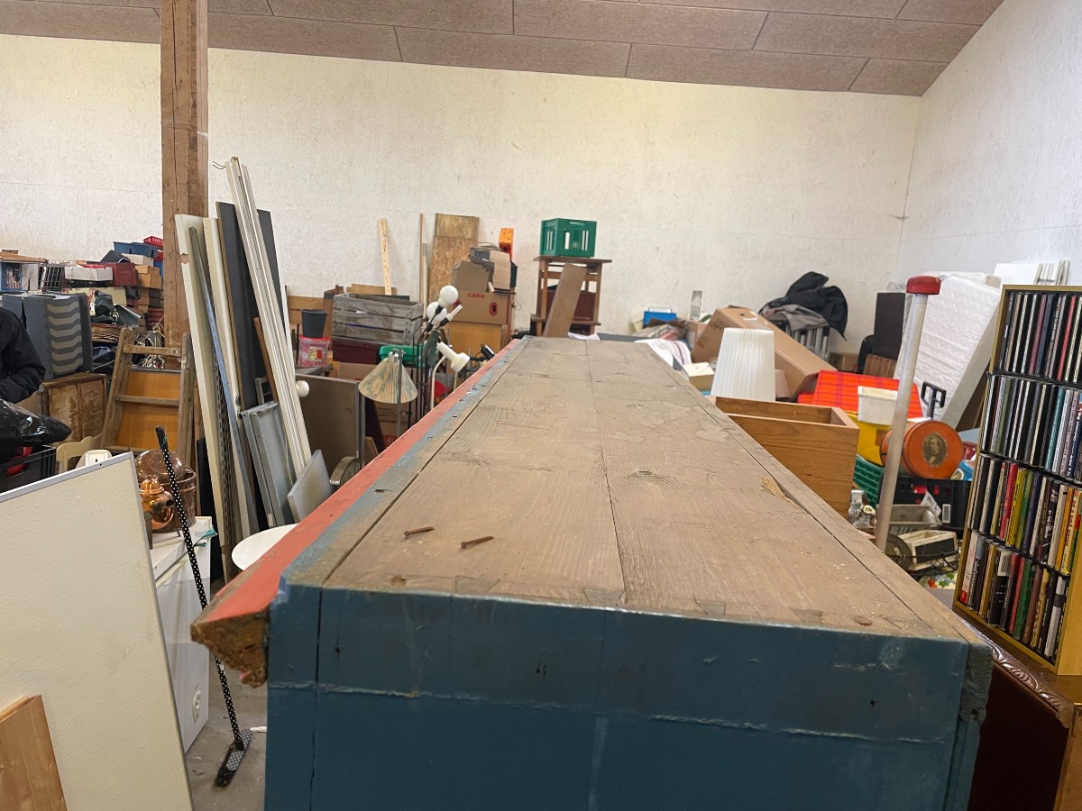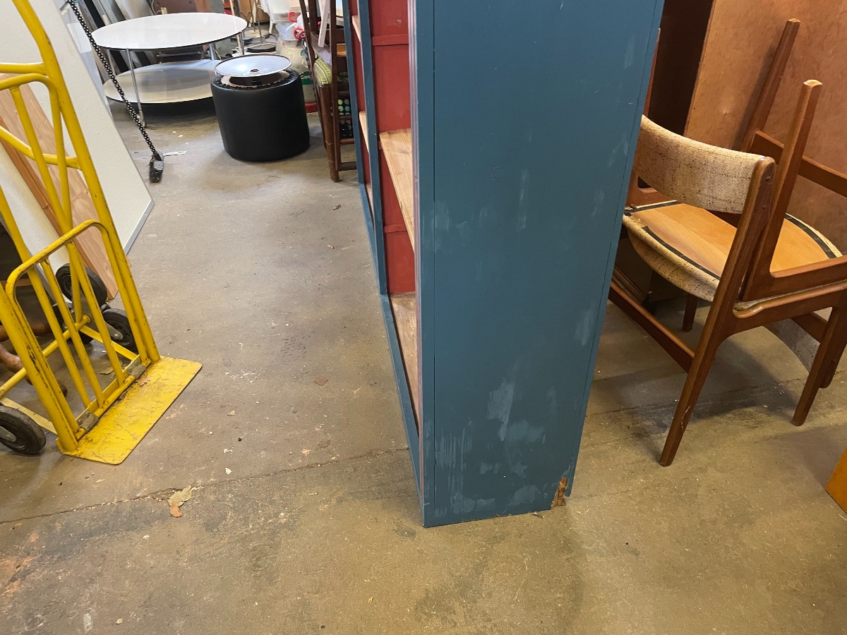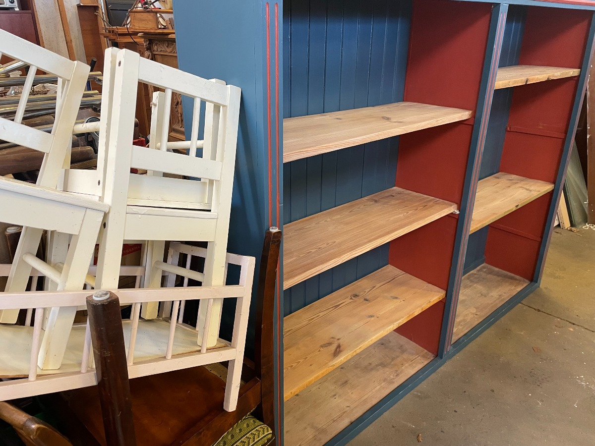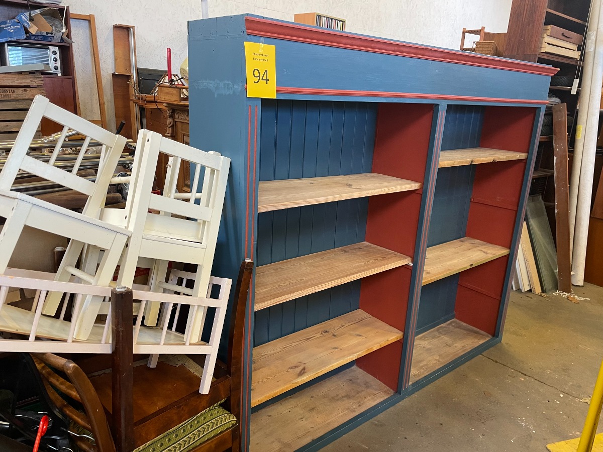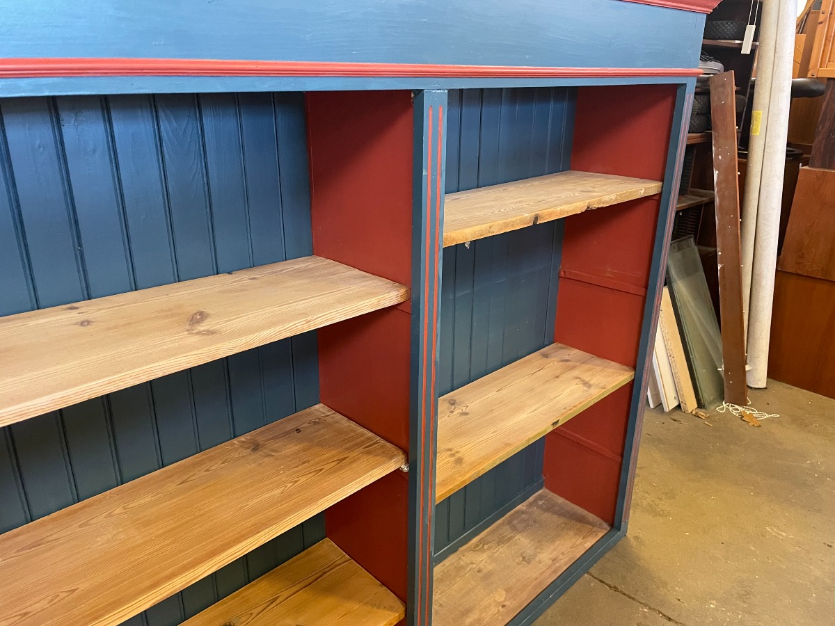 Stor delvis bemalet reol i træ.