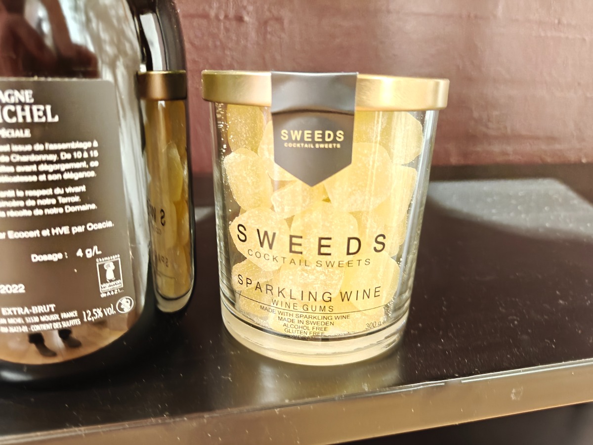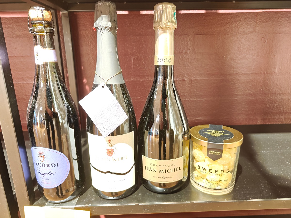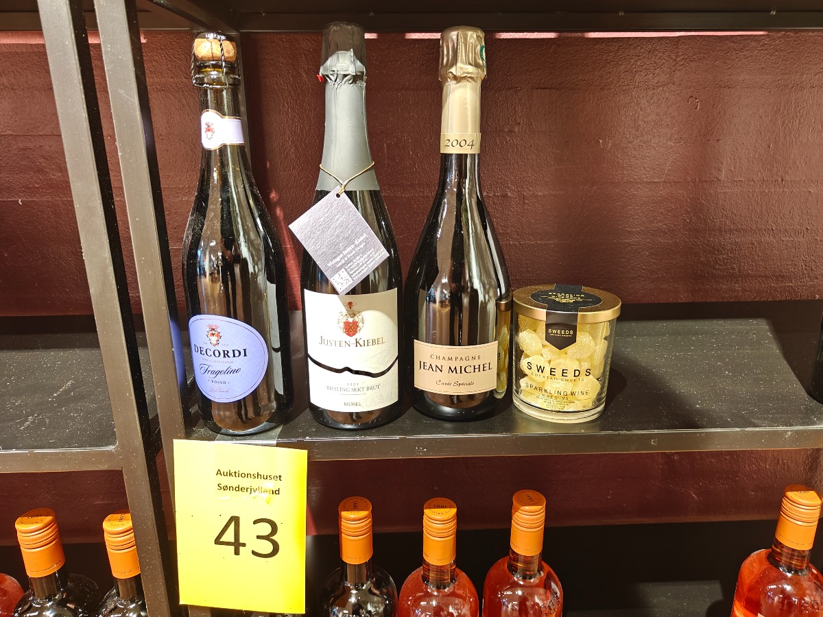 3 fl. mousserende vin samt vingummi. se fotos for detaljer.