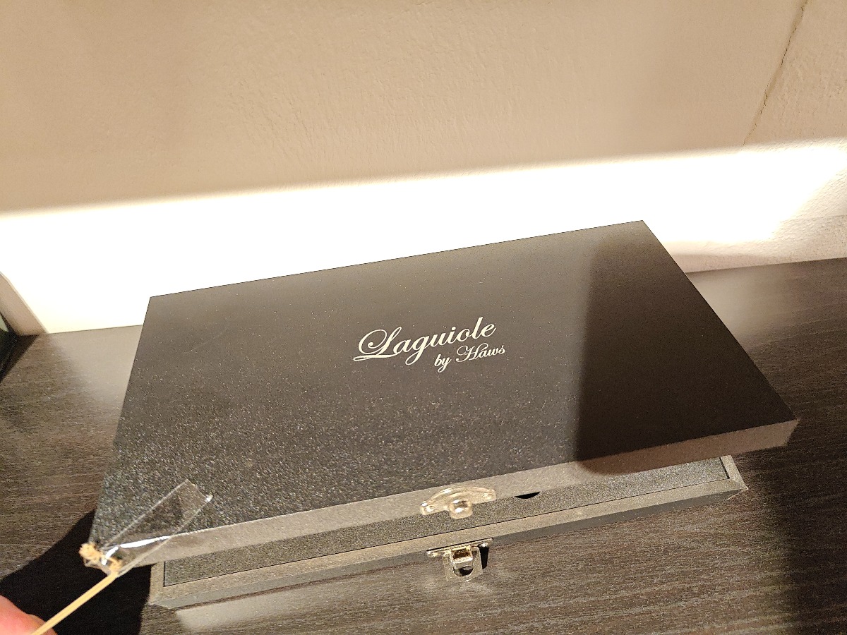 Laguiole osteknive med opbevaringskasse.