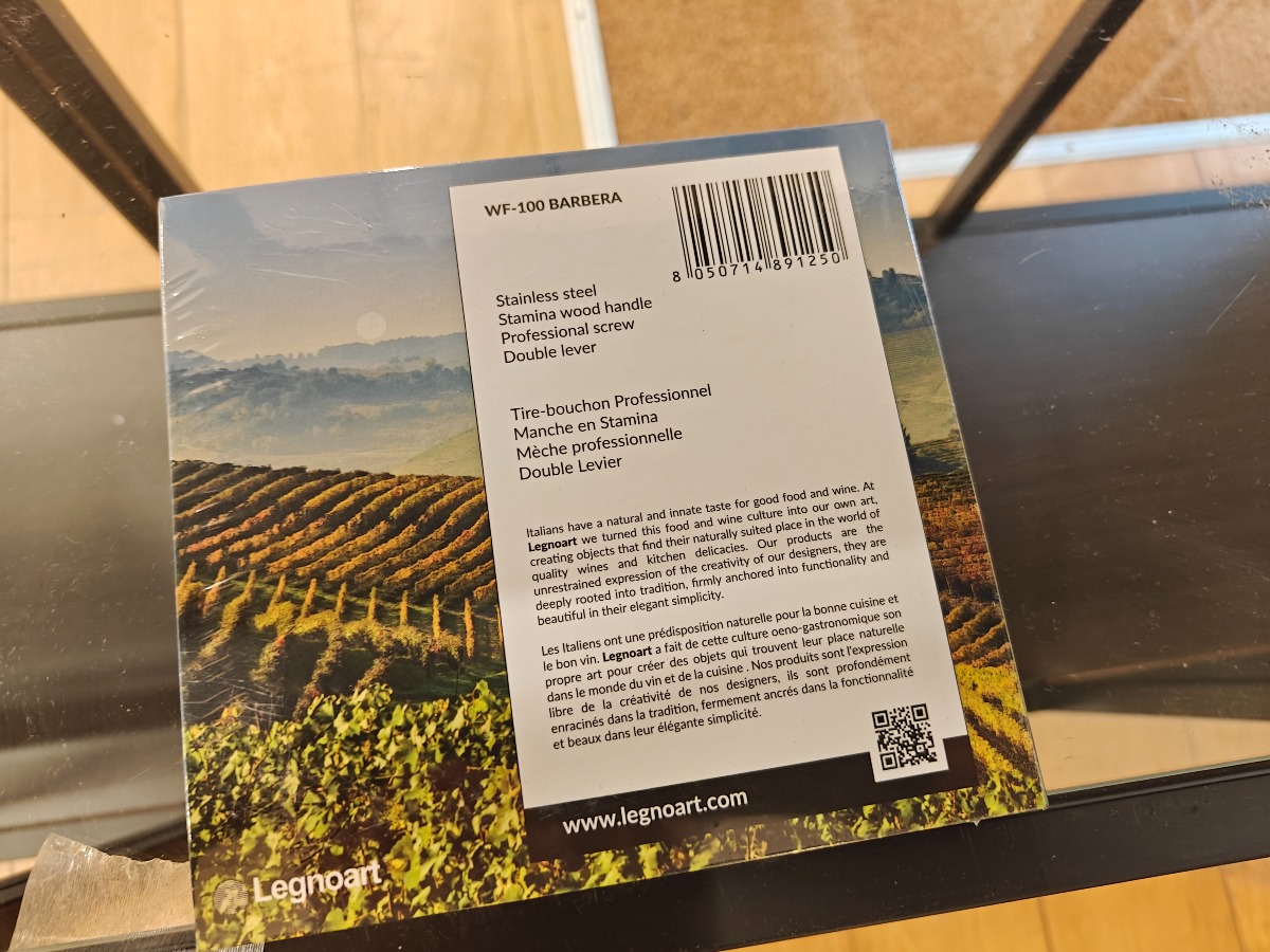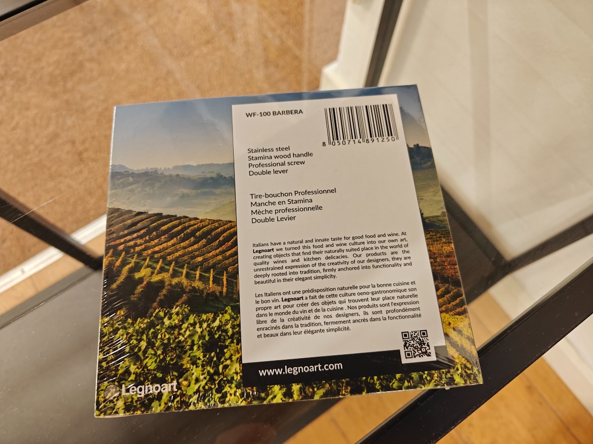 Legnoart Barbera proptrækker i original og ubrudt embalage.