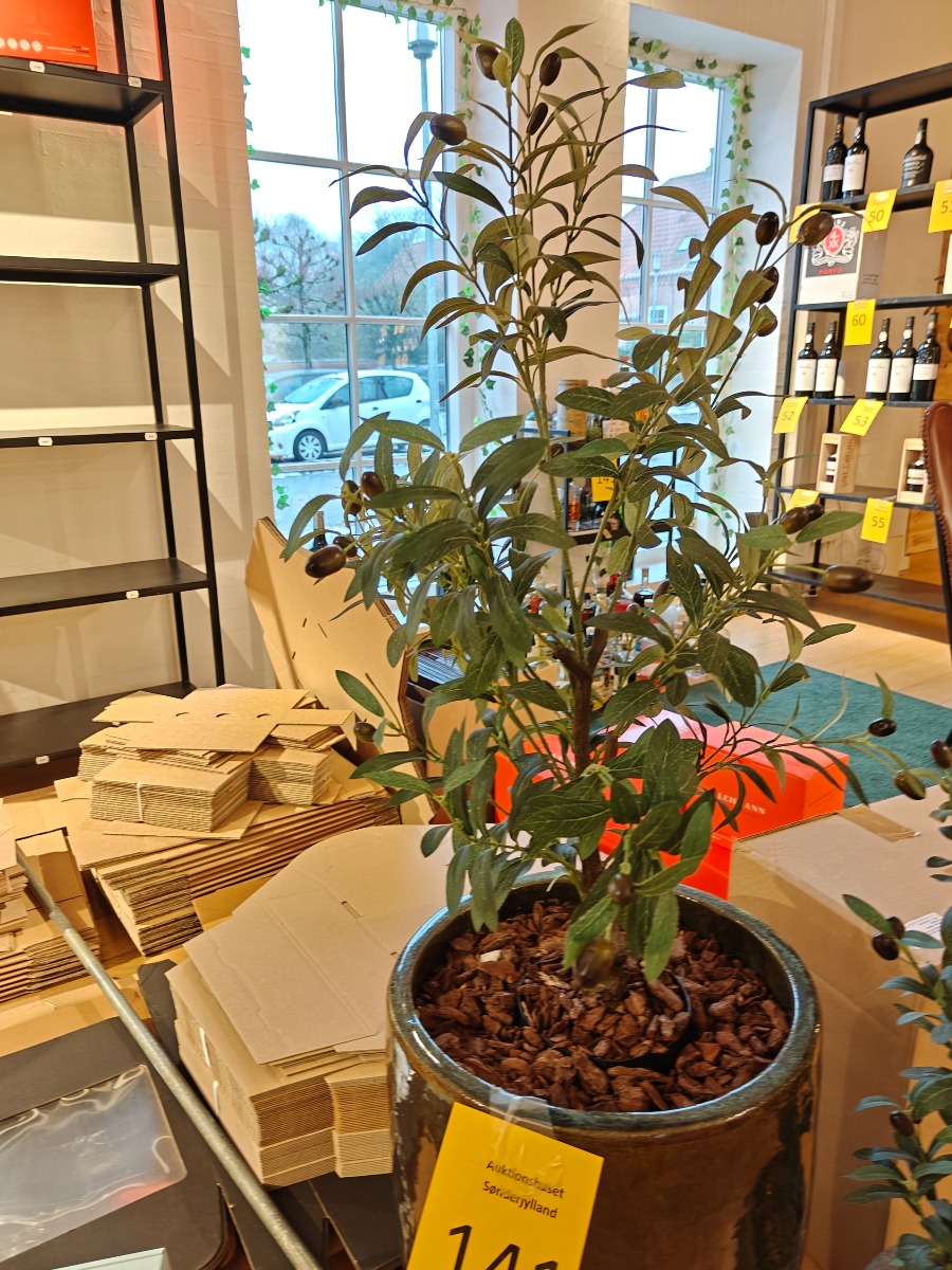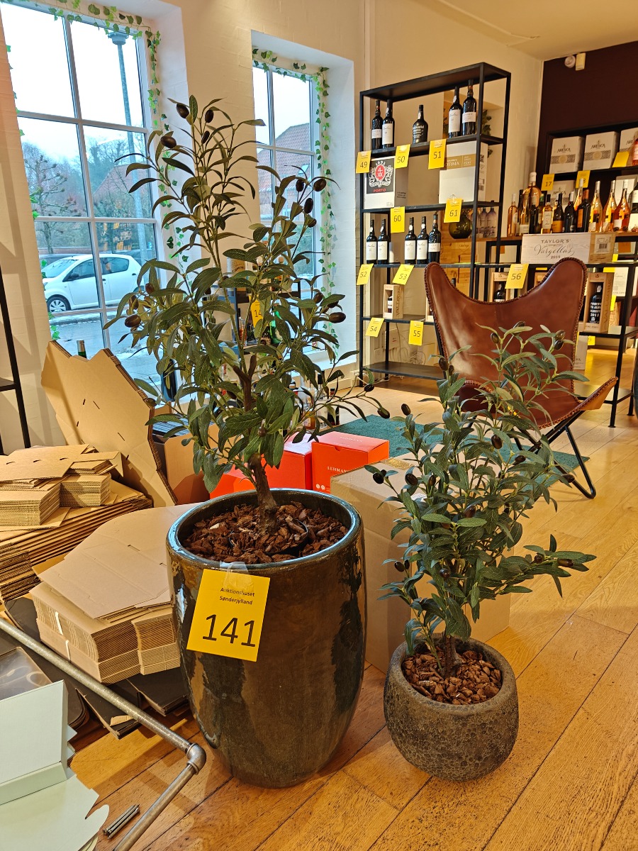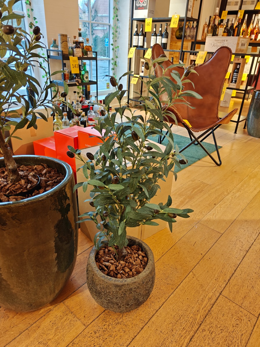 Kunstige olivenplanter i krukker. Højeste ca. 120 cm.