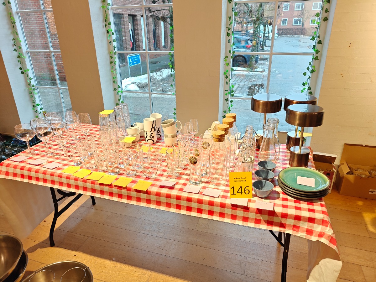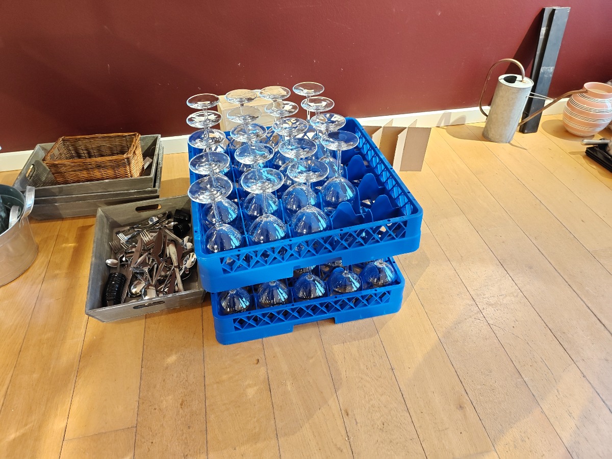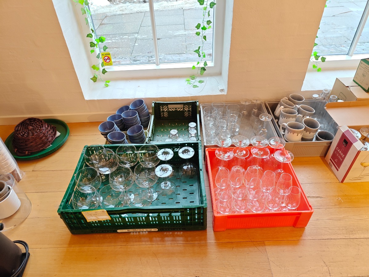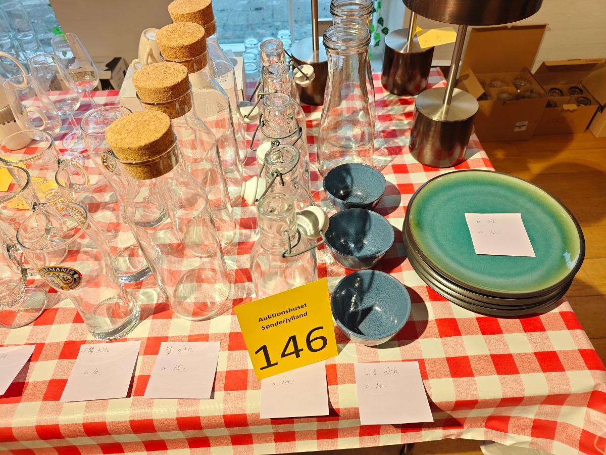 Stort lot. med glas og service. Mange dele. Alt fra vinkølere, lamper, mange forskellige glas, lidt service, bestik m.m. Alt skal rydes.