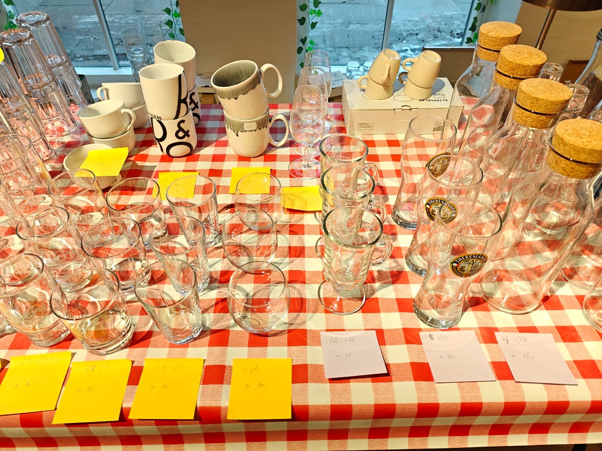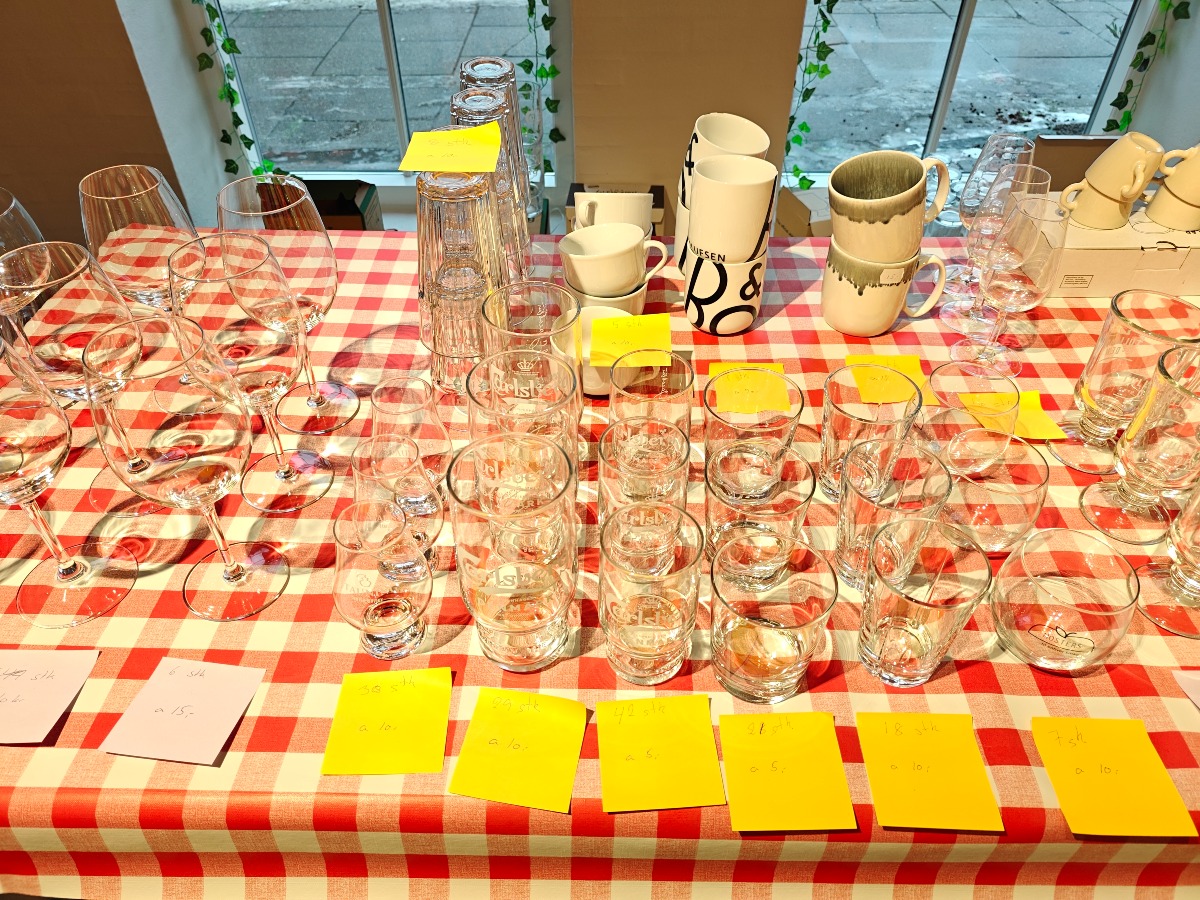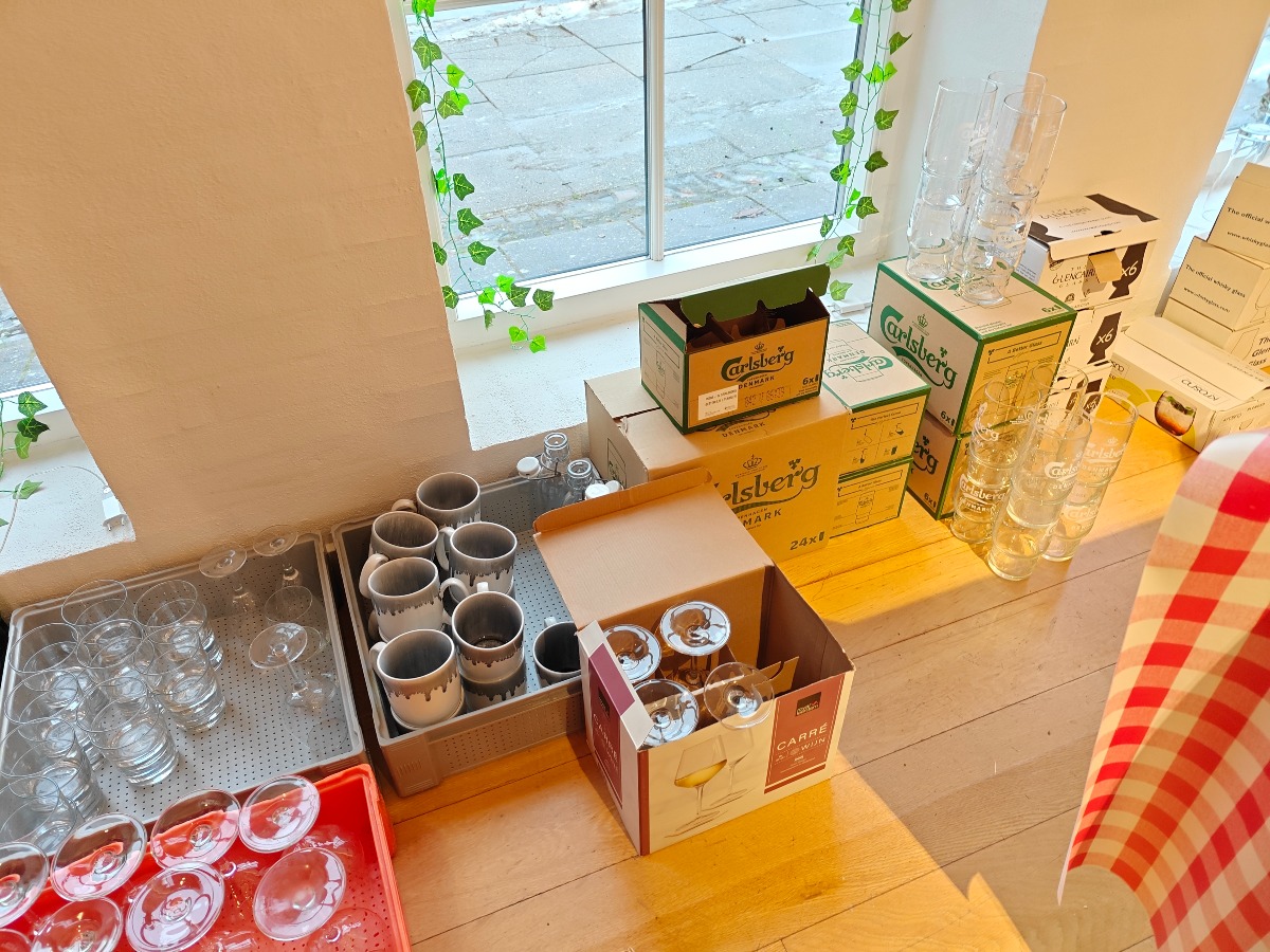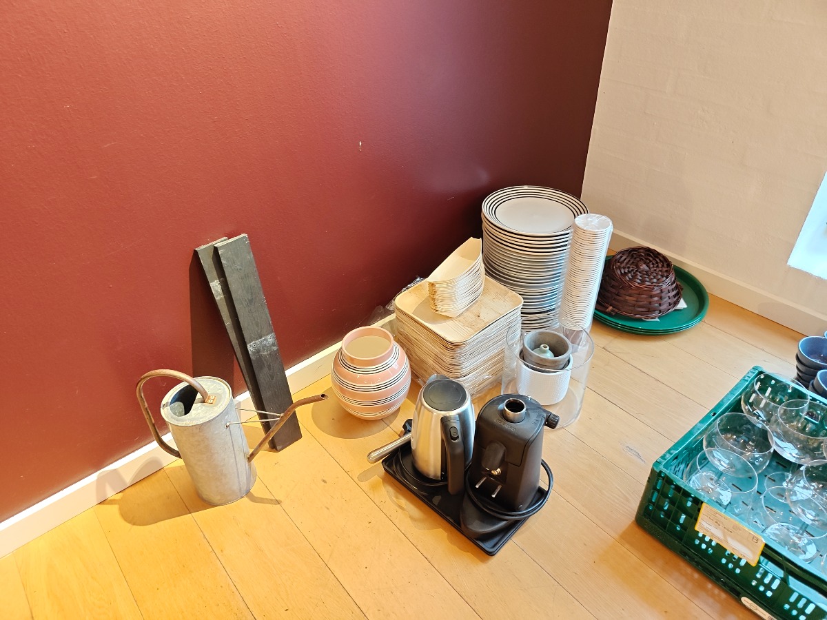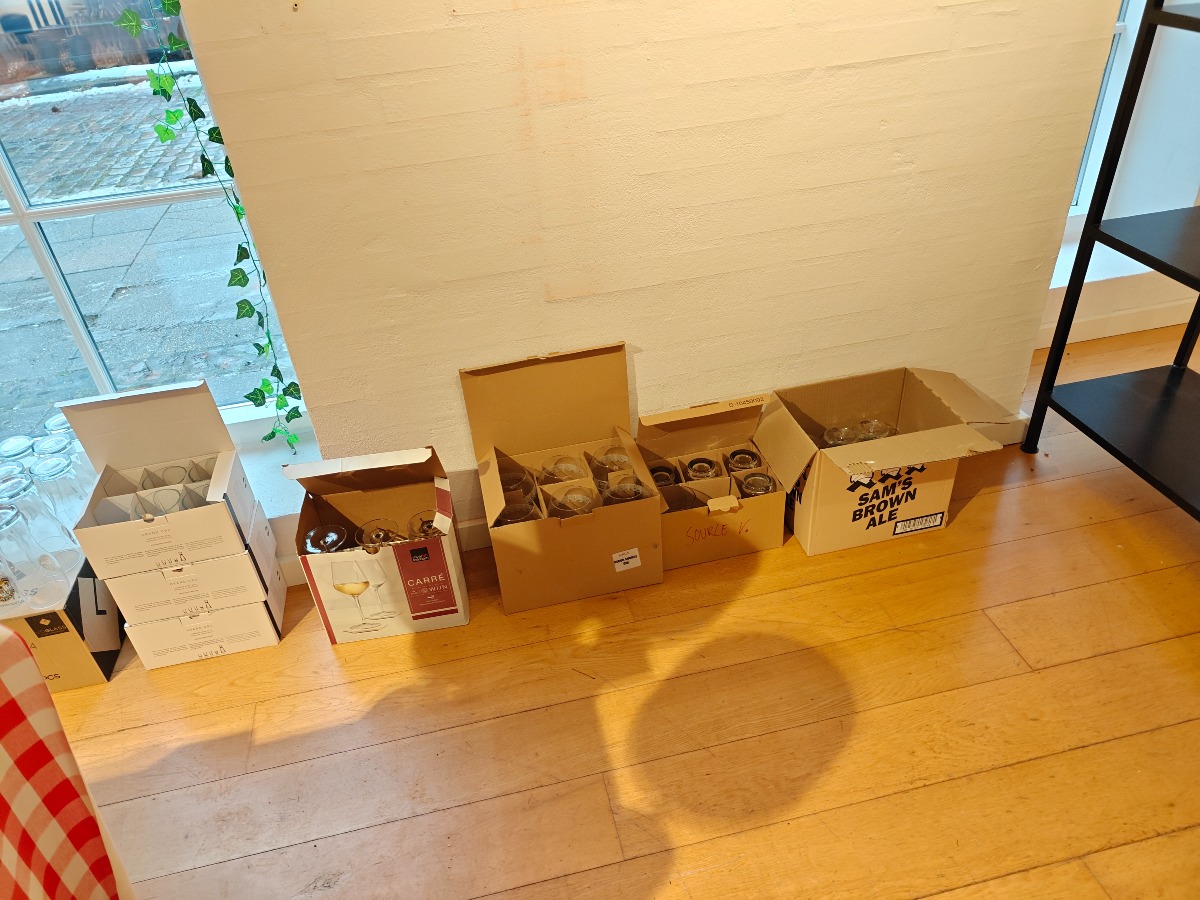 Stort lot. med glas og service. Mange dele. Alt fra vinkølere, lamper, mange forskellige glas, lidt service, bestik m.m. Alt skal rydes.